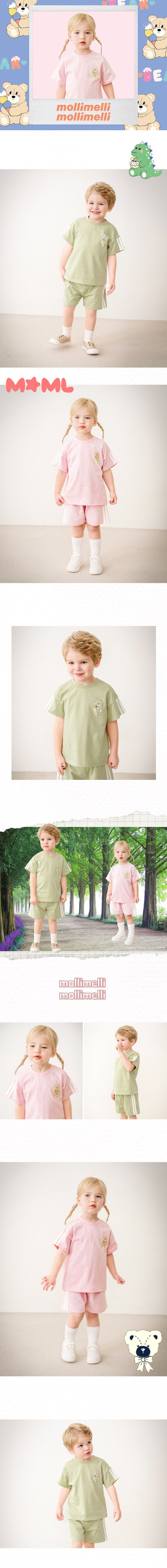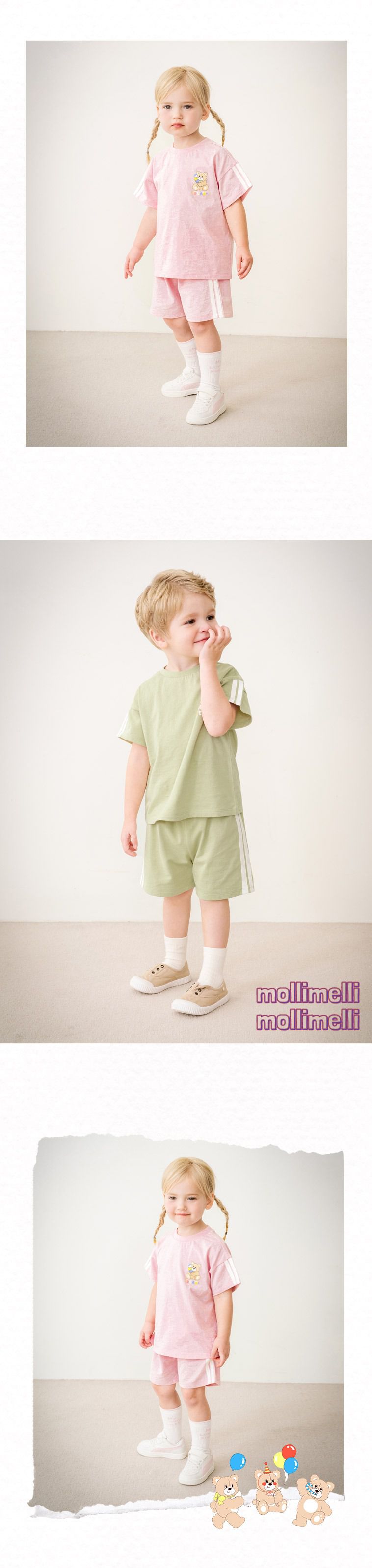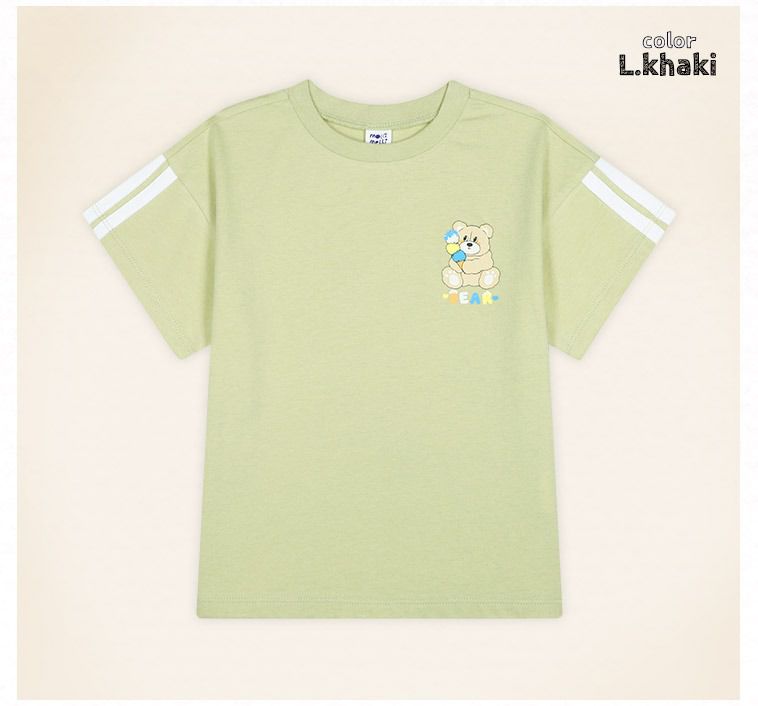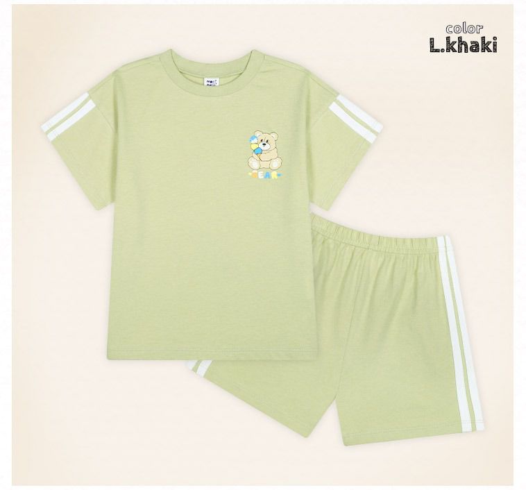 韓國 mollimelli - 迷你小熊冰淇淋運動風短袖套裝-淡軍綠