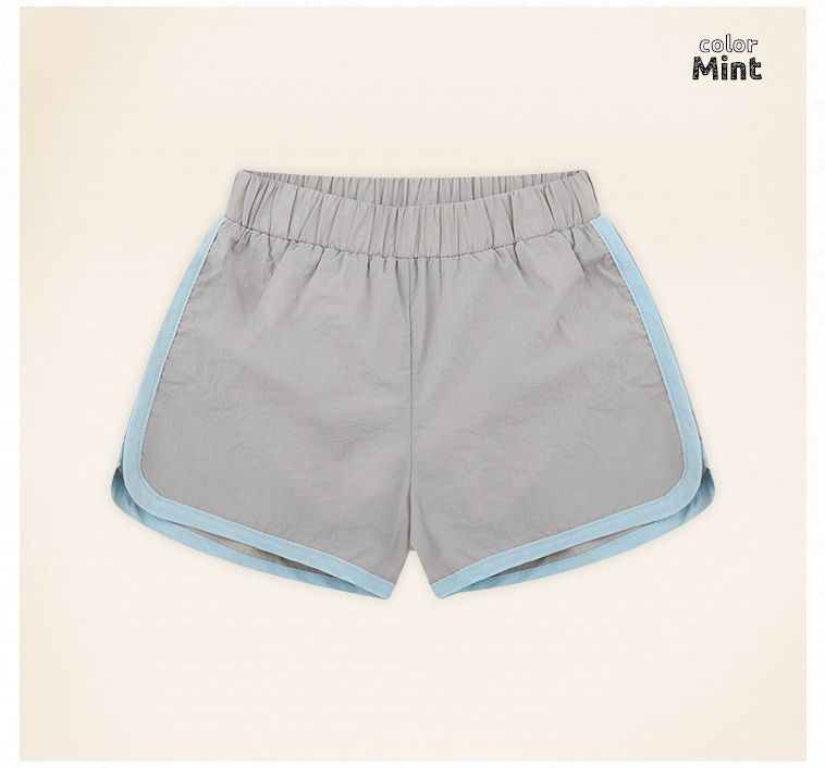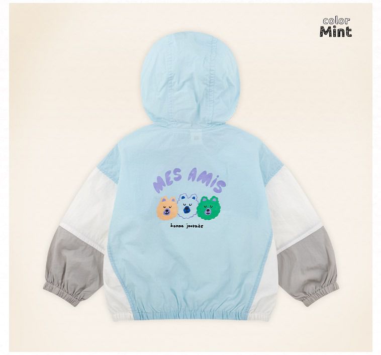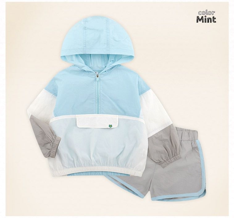 韓國 mollimelli - 動物印撞色連帽長袖上衣X短褲套裝-天藍X白X灰杏