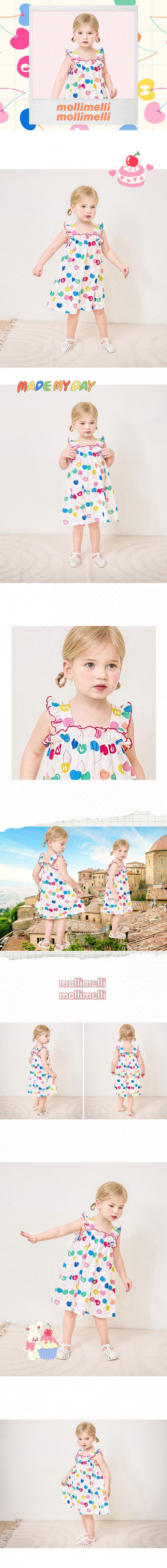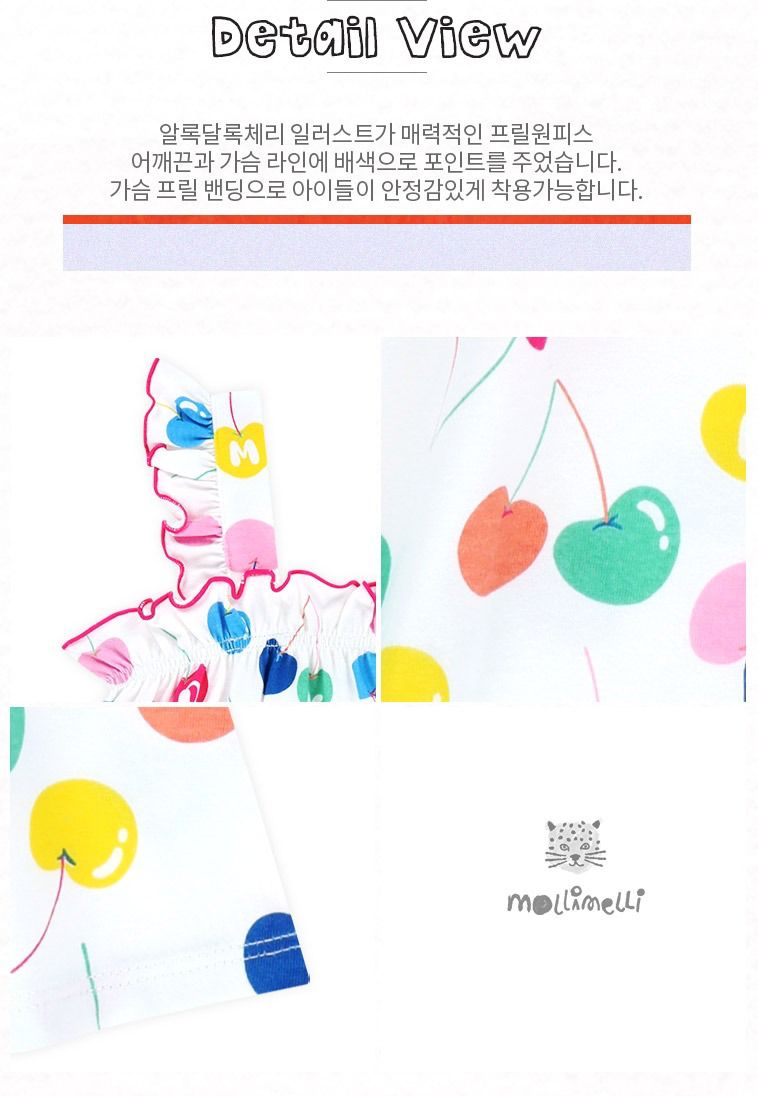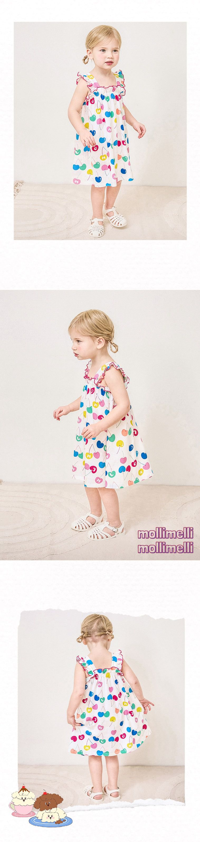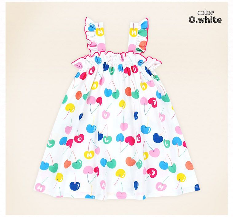韓國 mollimelli - 彩色櫻桃印花滾邊寬帶背心洋裝-白