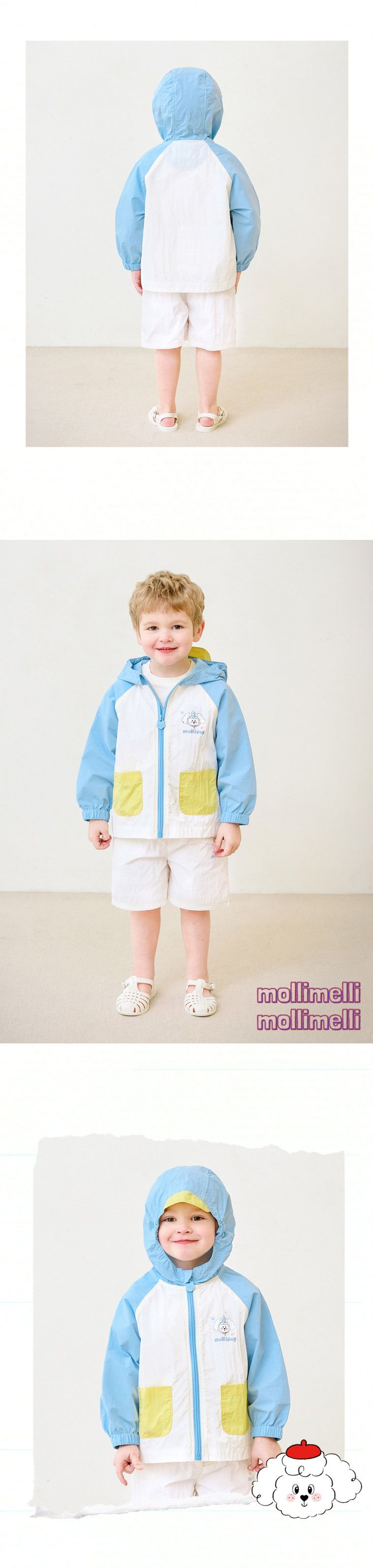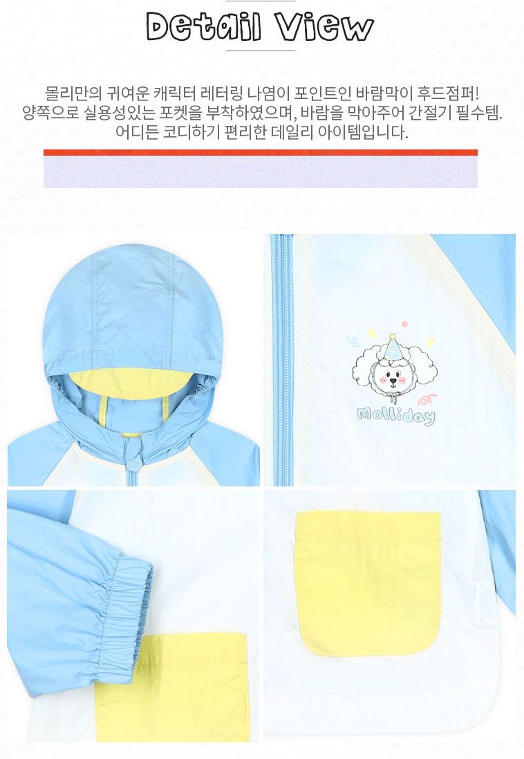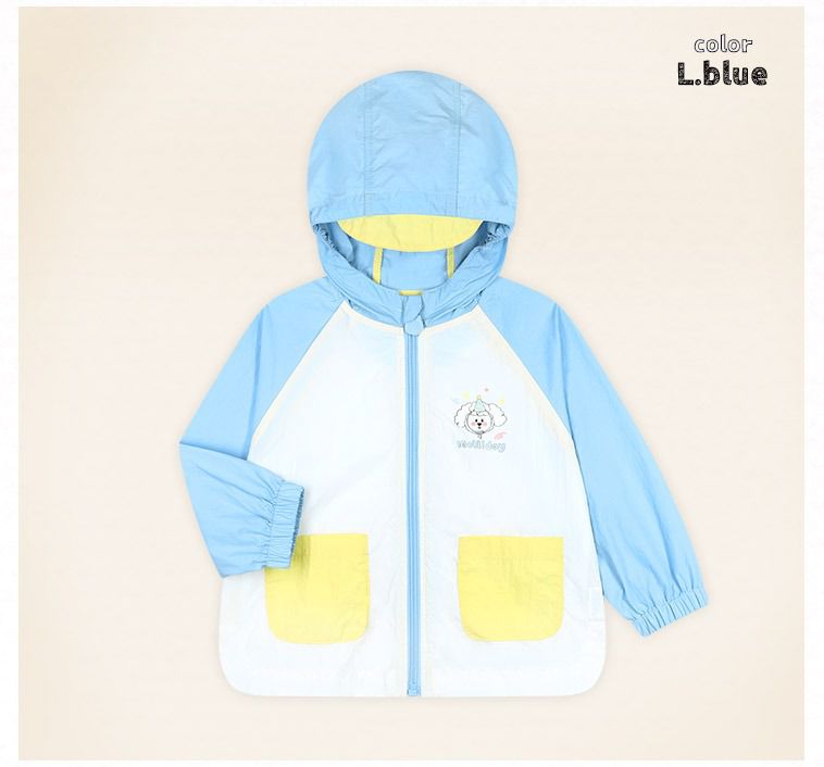 韓國 mollimelli - 雲朵狗狗撞色風格連帽外套-天藍X白X黃綠