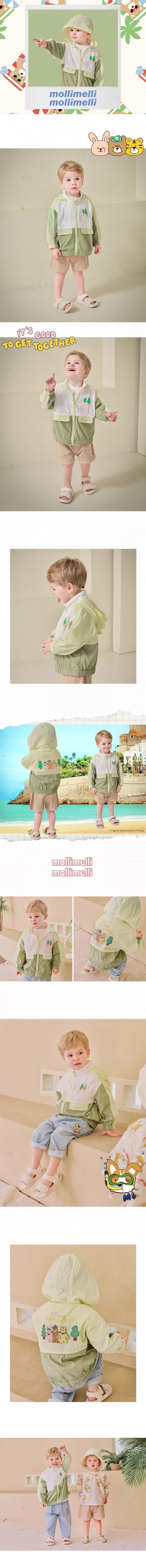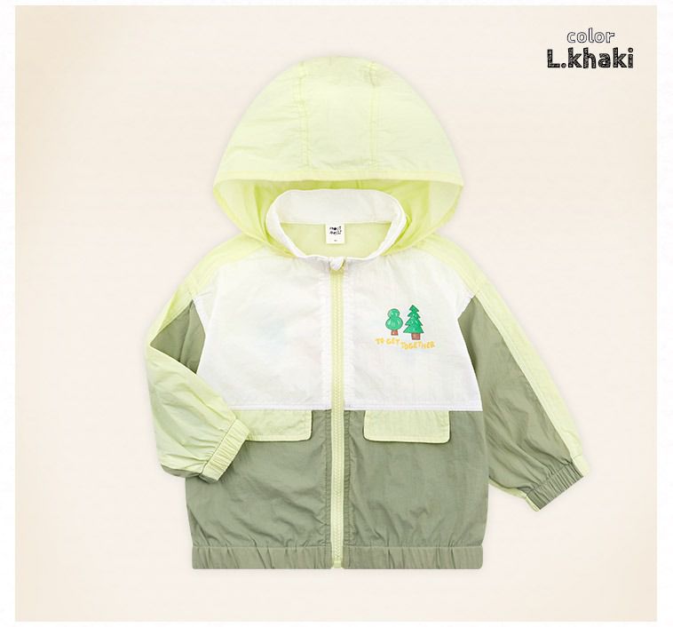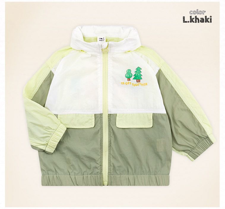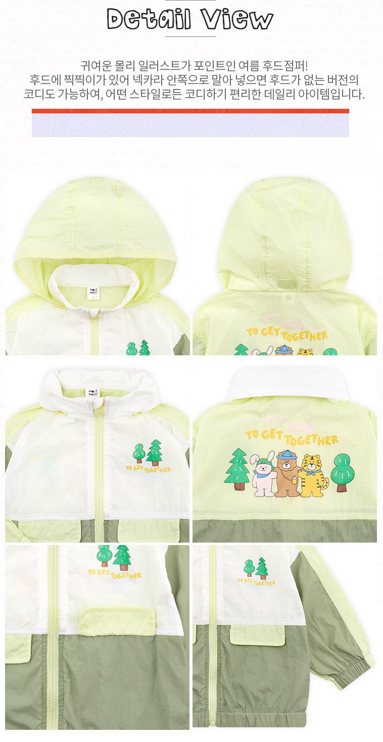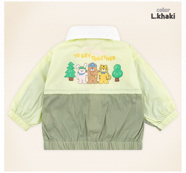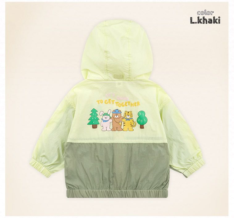 韓國 mollimelli - 森林動物好朋友可拆帽薄連帽外套-白X軍綠
