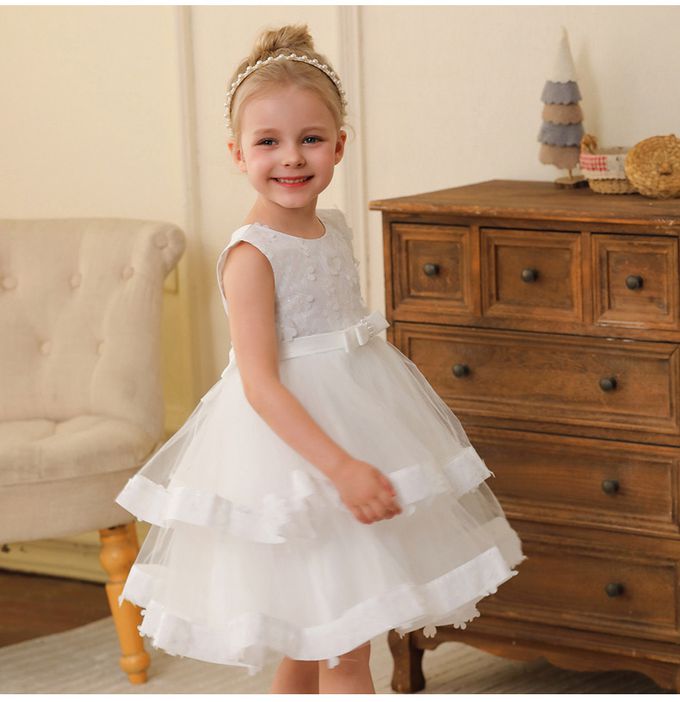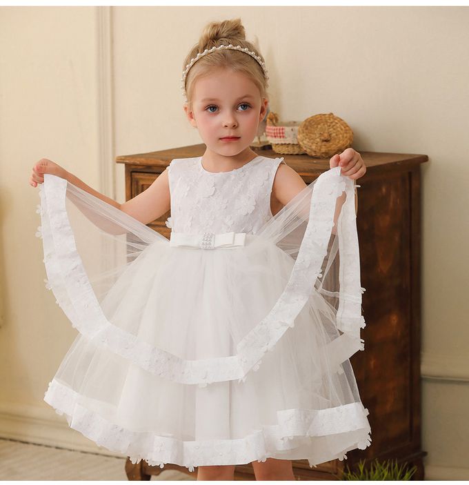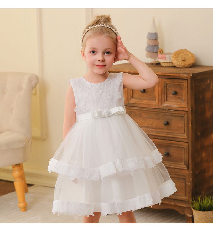 網紗無袖雙層蛋糕澎澎裙/短禮服-腰間蝴蝶結-白色