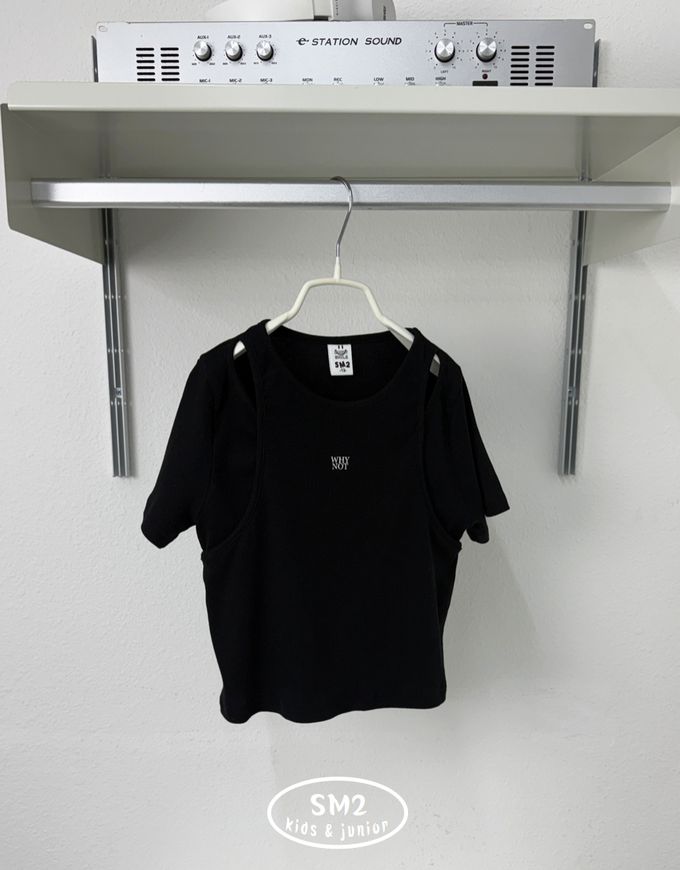 韓國 sm2 - 潮流假兩件背心拼接短袖上衣-黑
