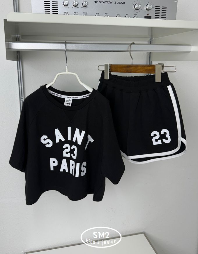 韓國 sm2 - 運動風字母印短袖套裝-黑
