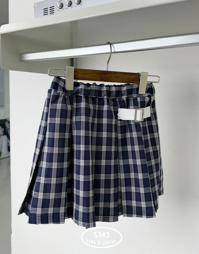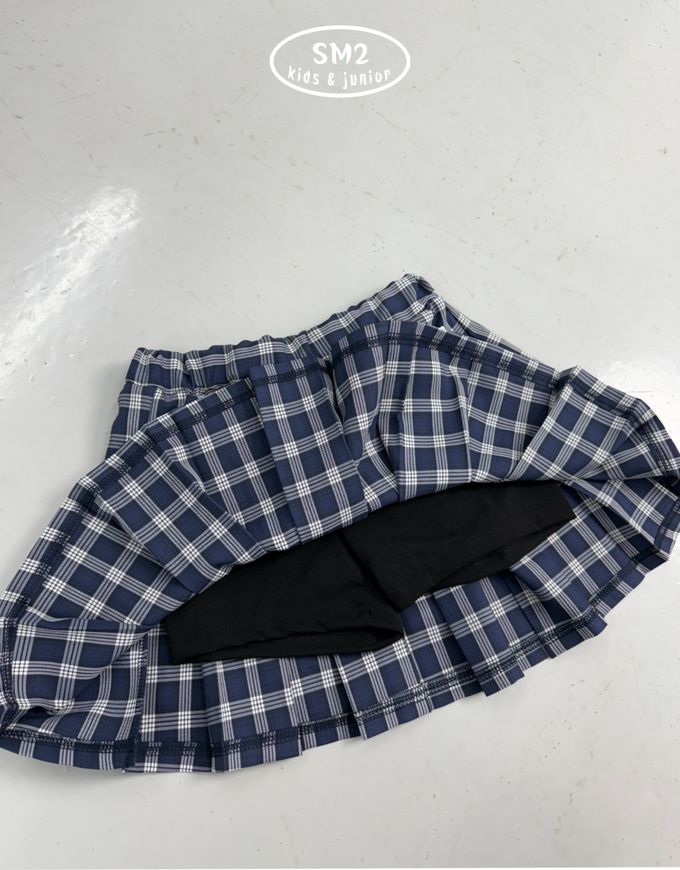 韓國 sm2 - 鬆緊腰經典格紋百褶裙-海軍藍