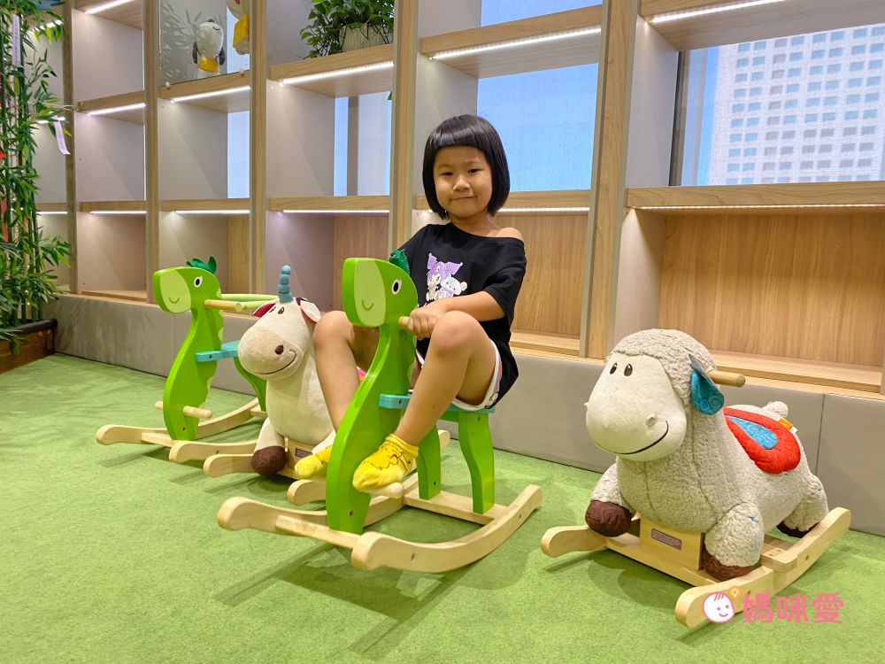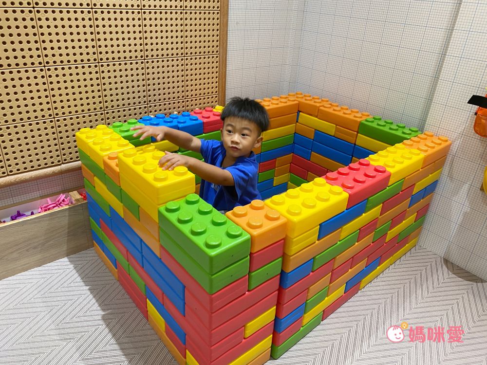 裡面提供豐富的學齡前玩具、發展教具、搖椅,還有一區專屬的軟積木池可以玩耍