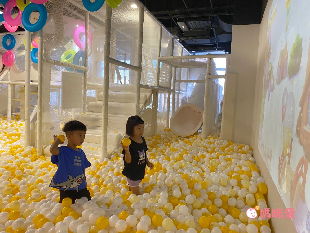幾個透明的氣泡也讓視覺看起來非常夢幻,加上白色黃色的球,讓這區非常明亮。