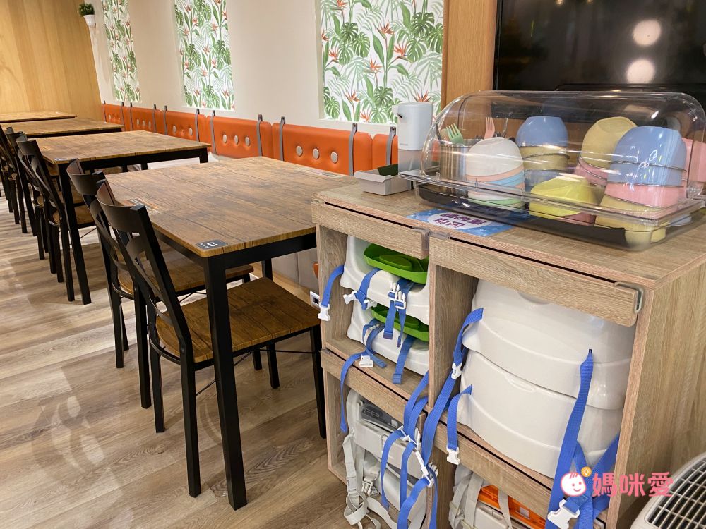 小孩的餐具和兒童椅也都有,沙發區的椅子和桌子之間的距離也非常適合孩子們用餐喔!