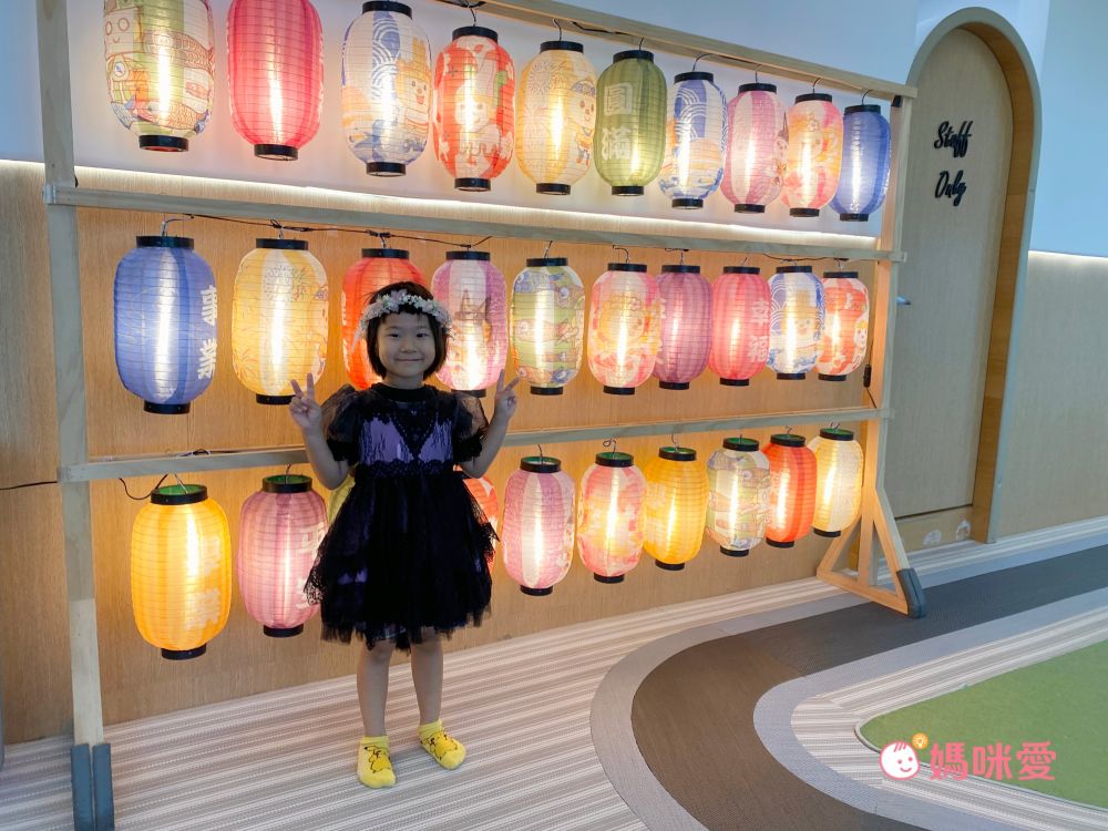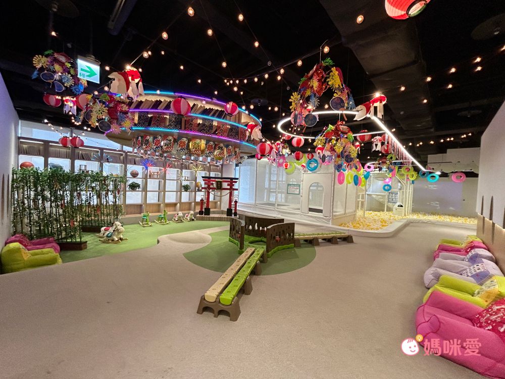 上方的造景是書架加上太空星球也很精緻,又將孩子們玩樂的空間帶回到太空與星球間的設定中,來玩的時間剛好樂園的主題加入了夏日祭典熱鬧的佈置