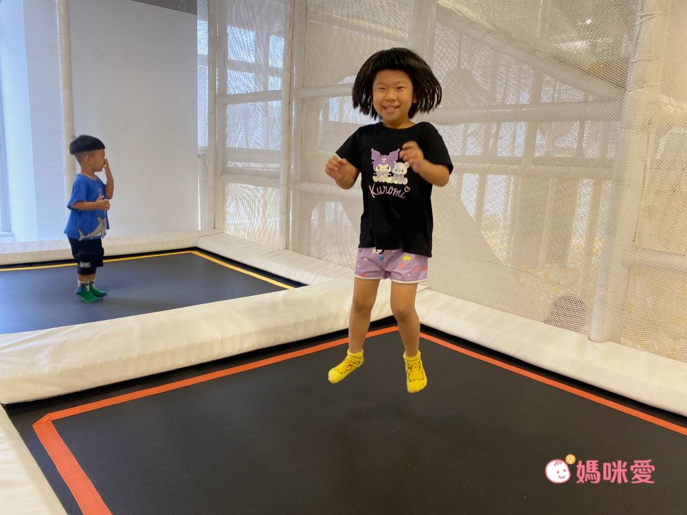 球池外圍還有彈跳床!哪個孩子能不愛跳床,面積挺大的可以讓小孩盡情彈跳放電