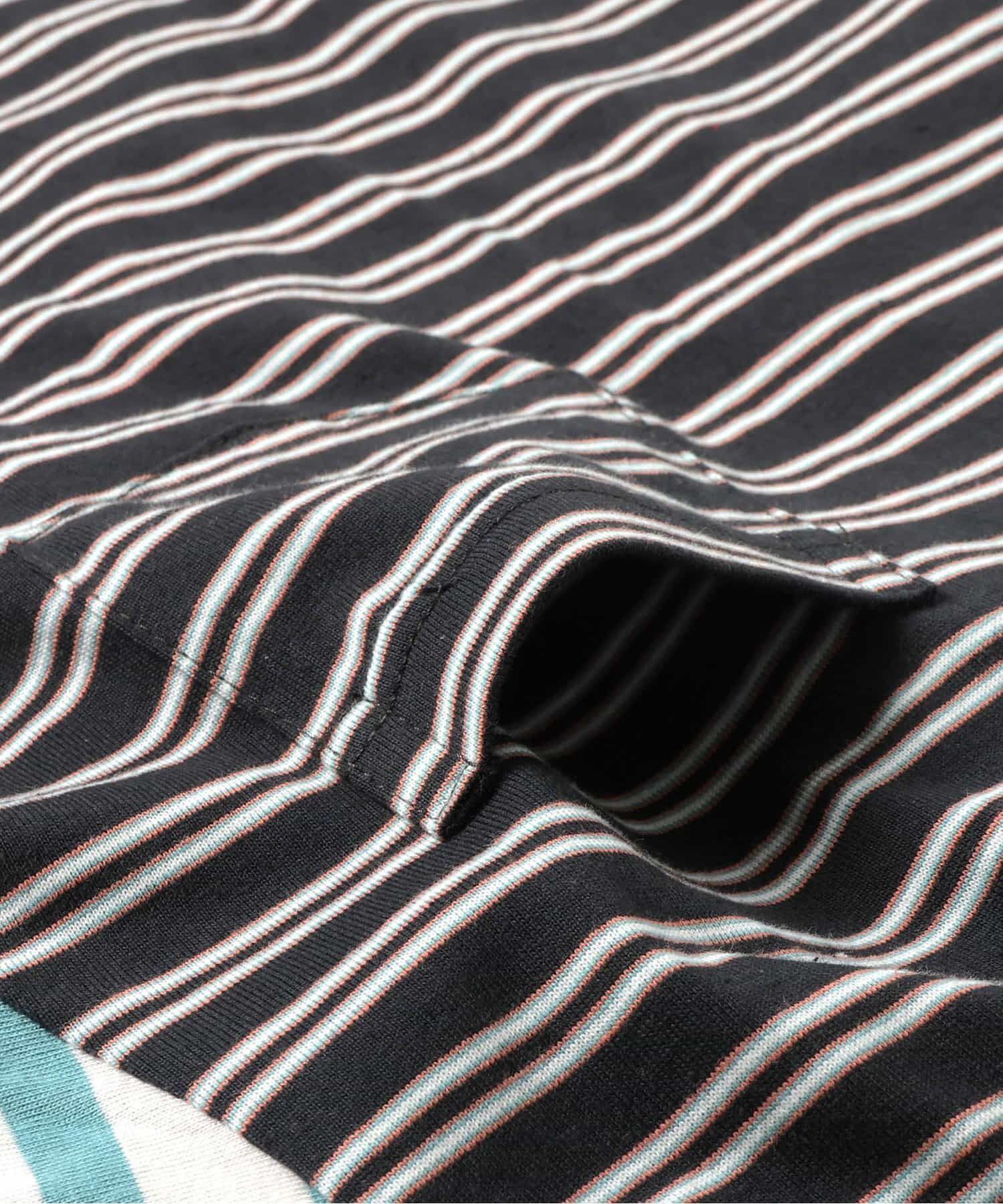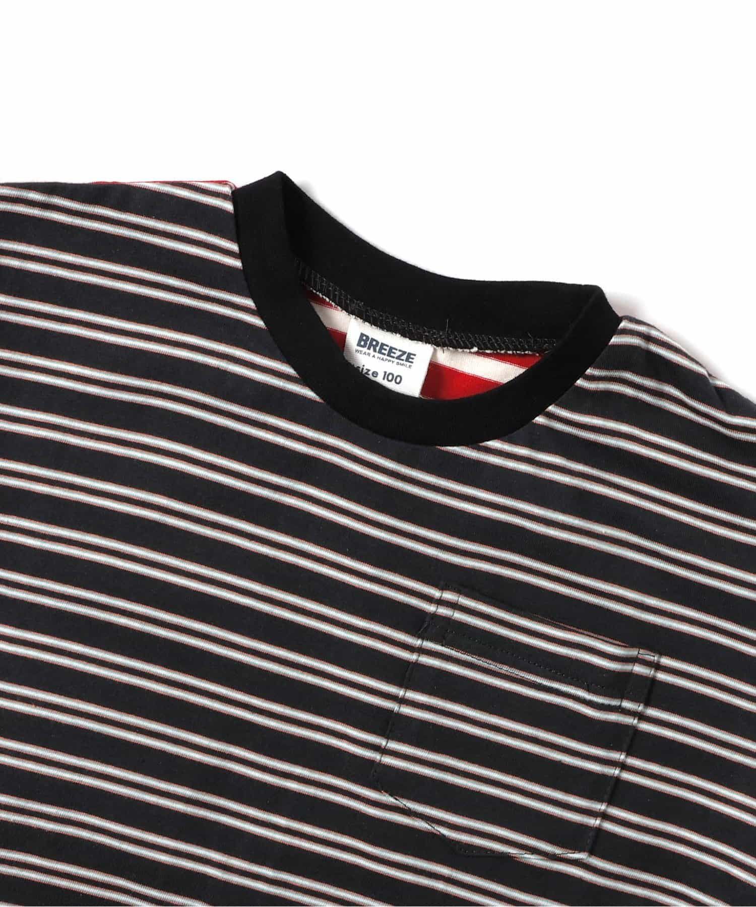 日本 BREEZE - [推薦]定番款短袖上衣-撞色條紋-綠紫紅