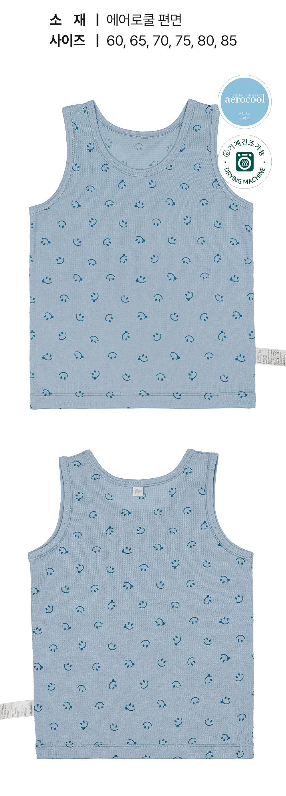 韓國 Ppippilong - aerocool 涼感快乾背心內衣(男寶)-眨眼笑臉-灰藍