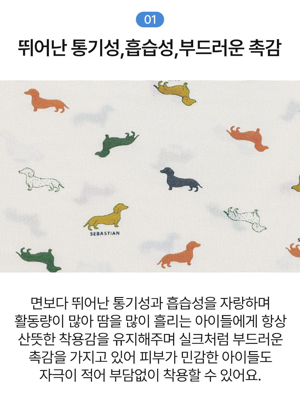 ( 01.) 吸濕、透氣,涼爽不悶熱,如同絲綢般的細膩、柔軟,易流汗的孩子也能舒適穿著