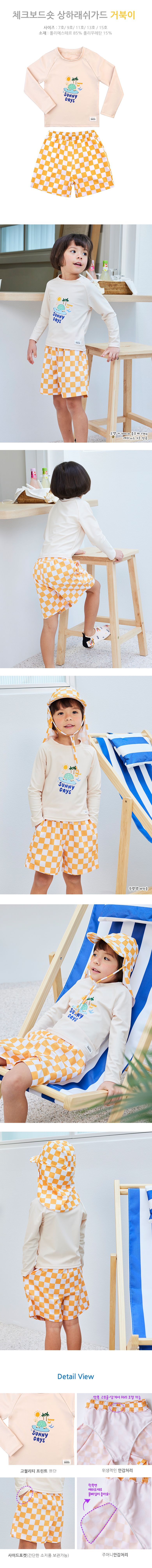韓國 Bebechat - UPF 50+抗UV兩件式兒童泳衣/泳裝(長袖X短褲)-夏日海龜-米膚X橘黃