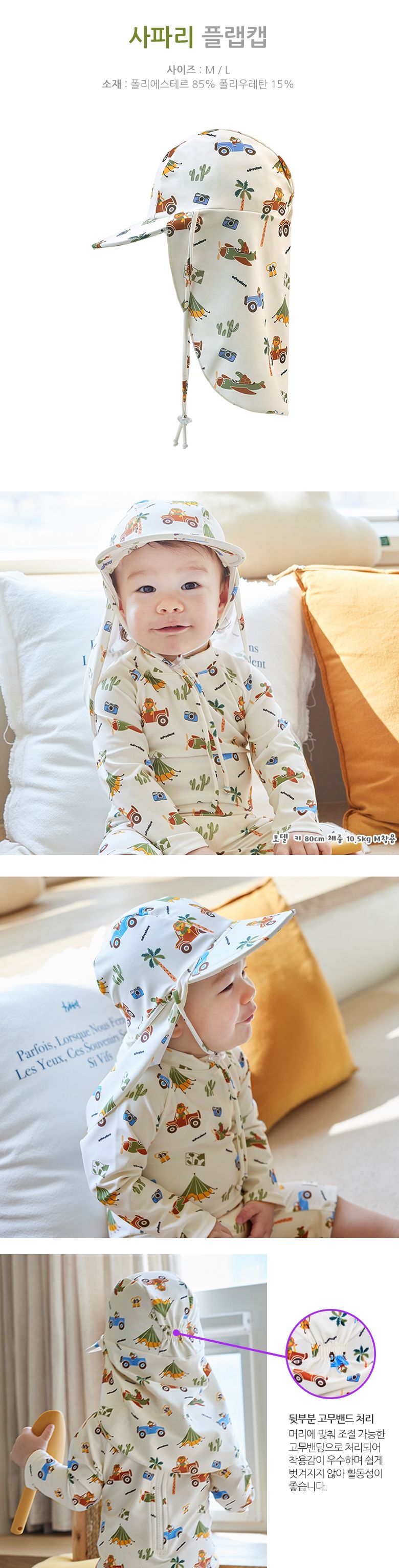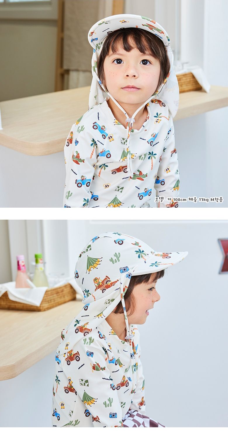 韓國 Bebechat - UPF 50+抗UV超防曬遮脖帽/戲水帽-旅行動物-米