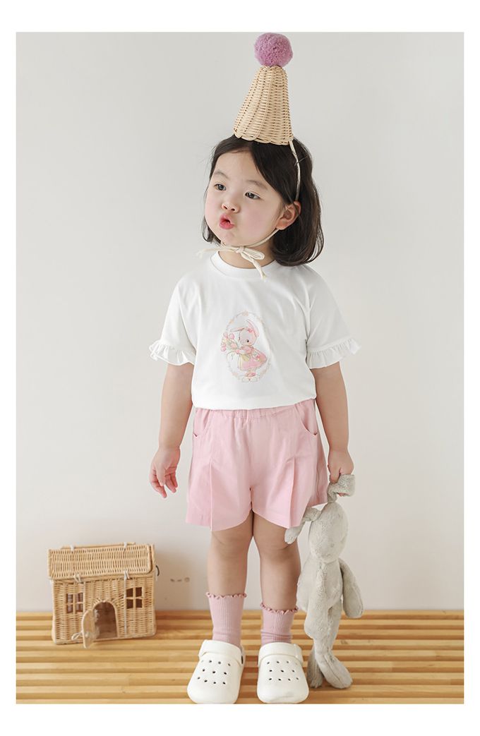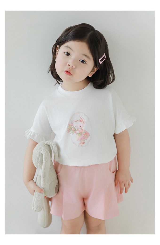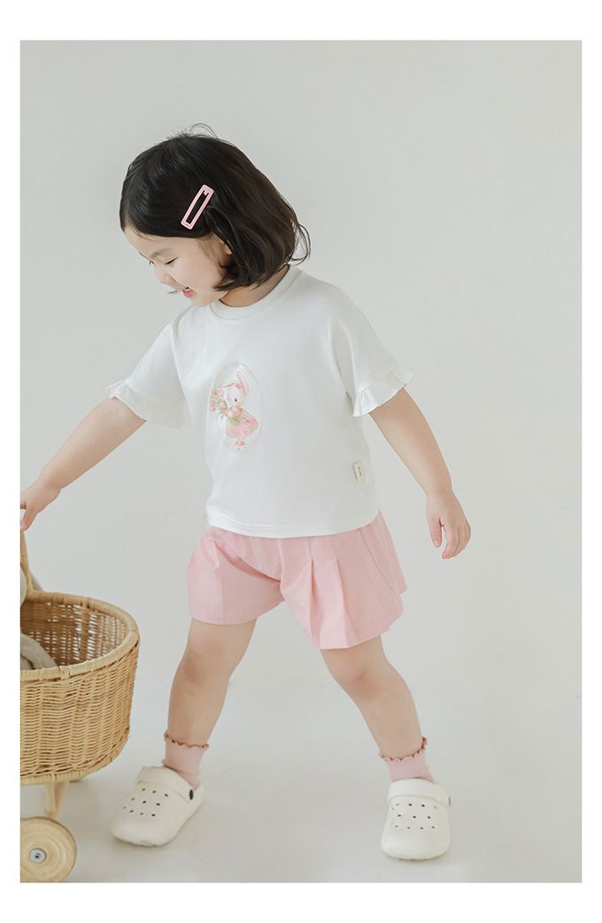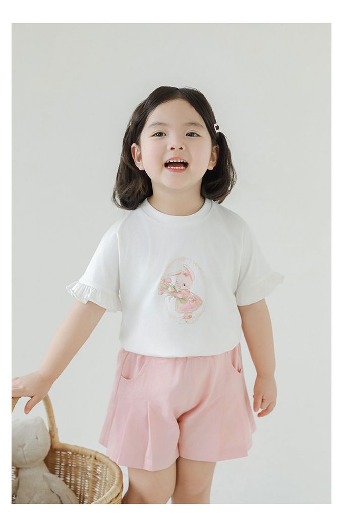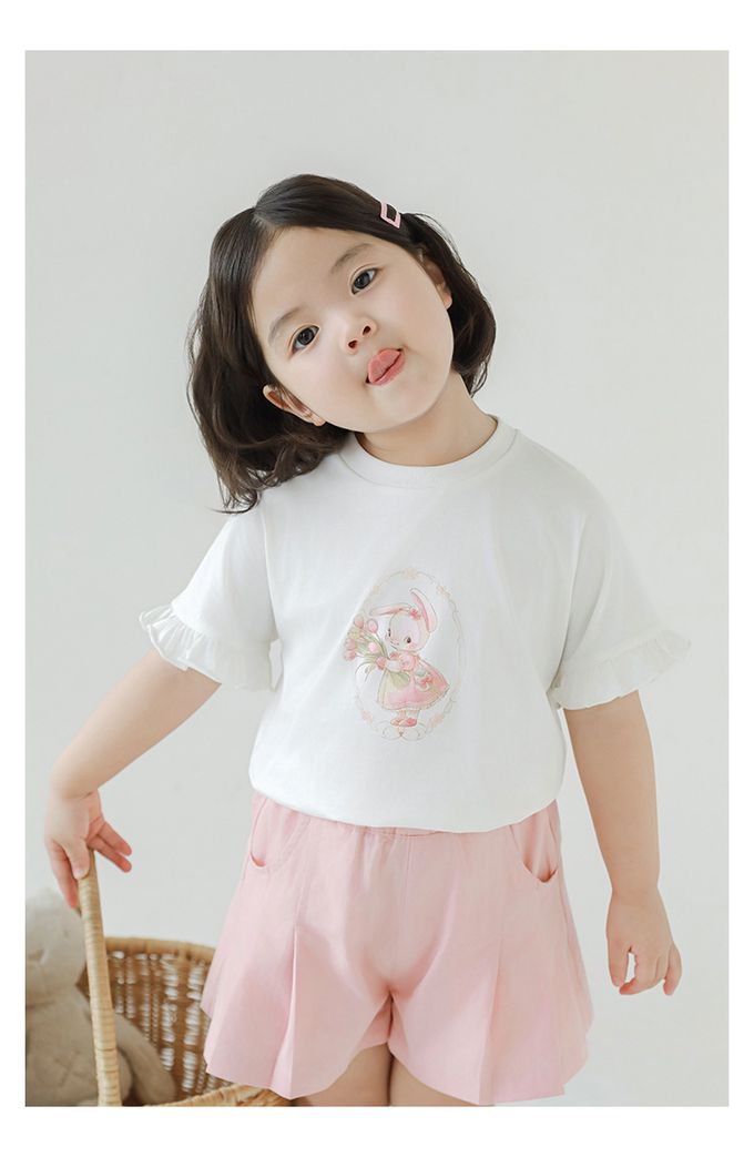 TONGMO - 圓領木耳邊短袖上衣-兔子-白色