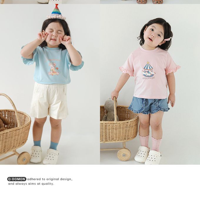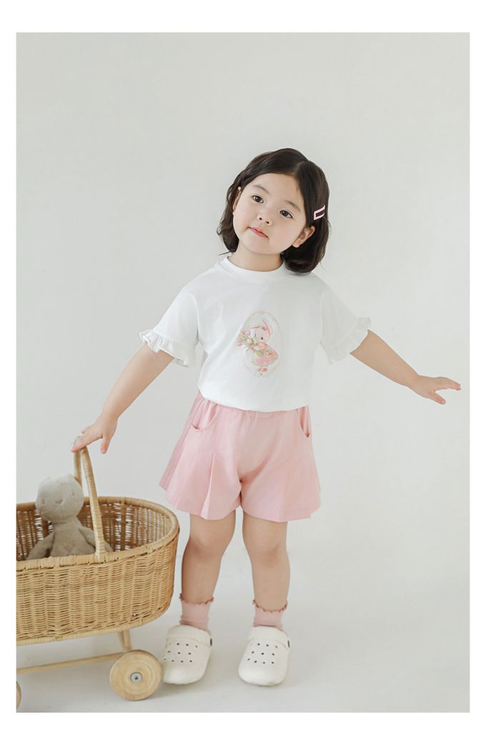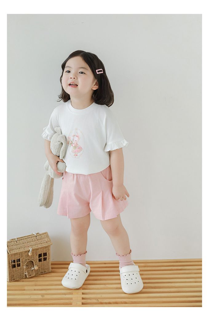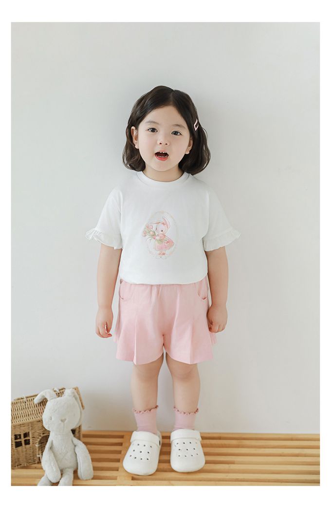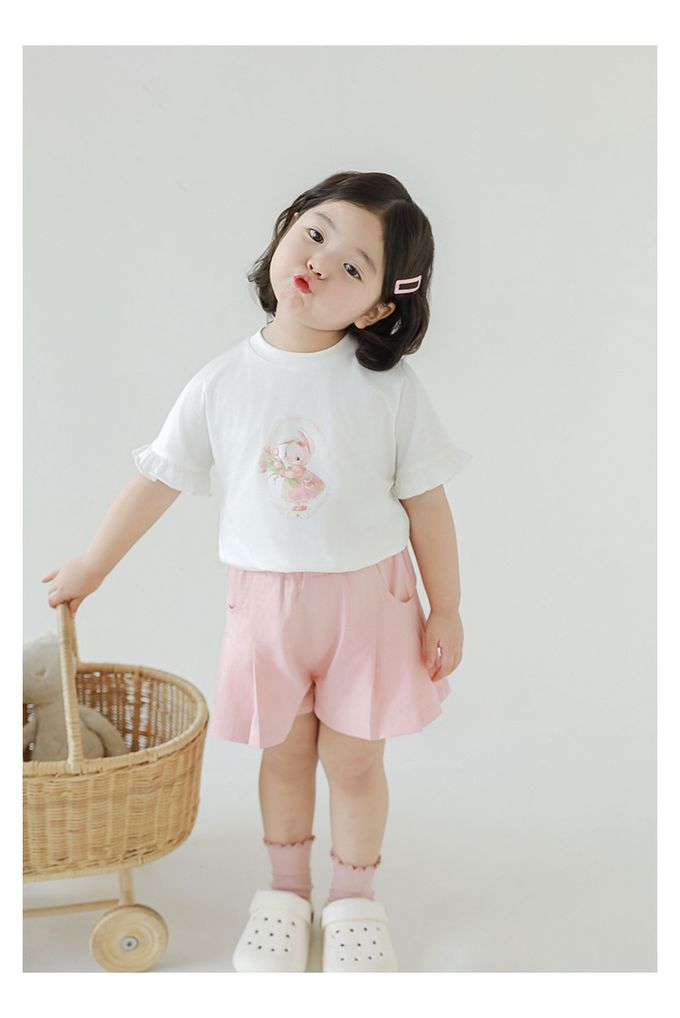 TONGMO - 圓領木耳邊短袖上衣-兔子-白色