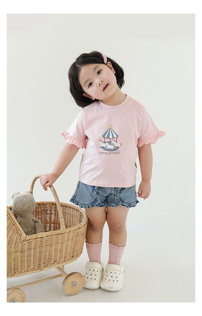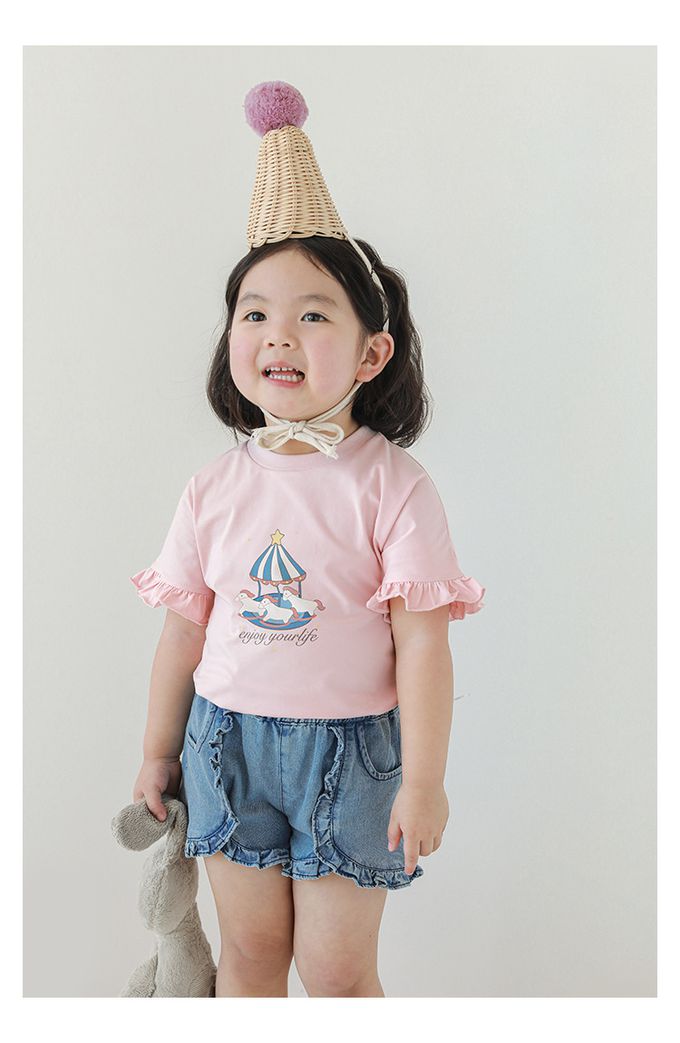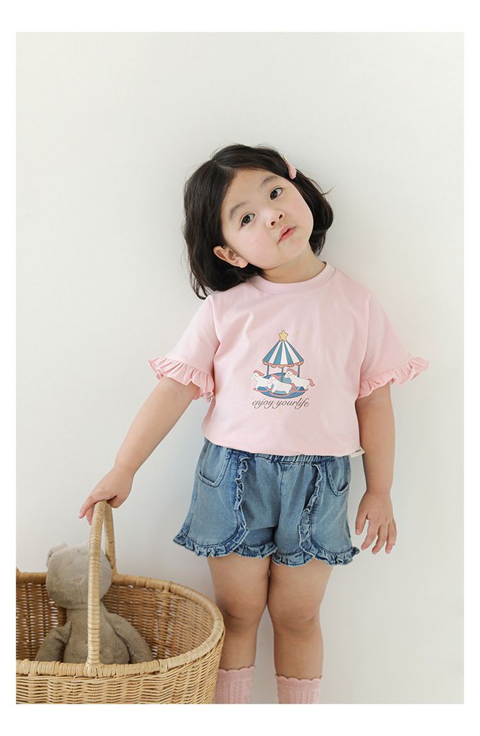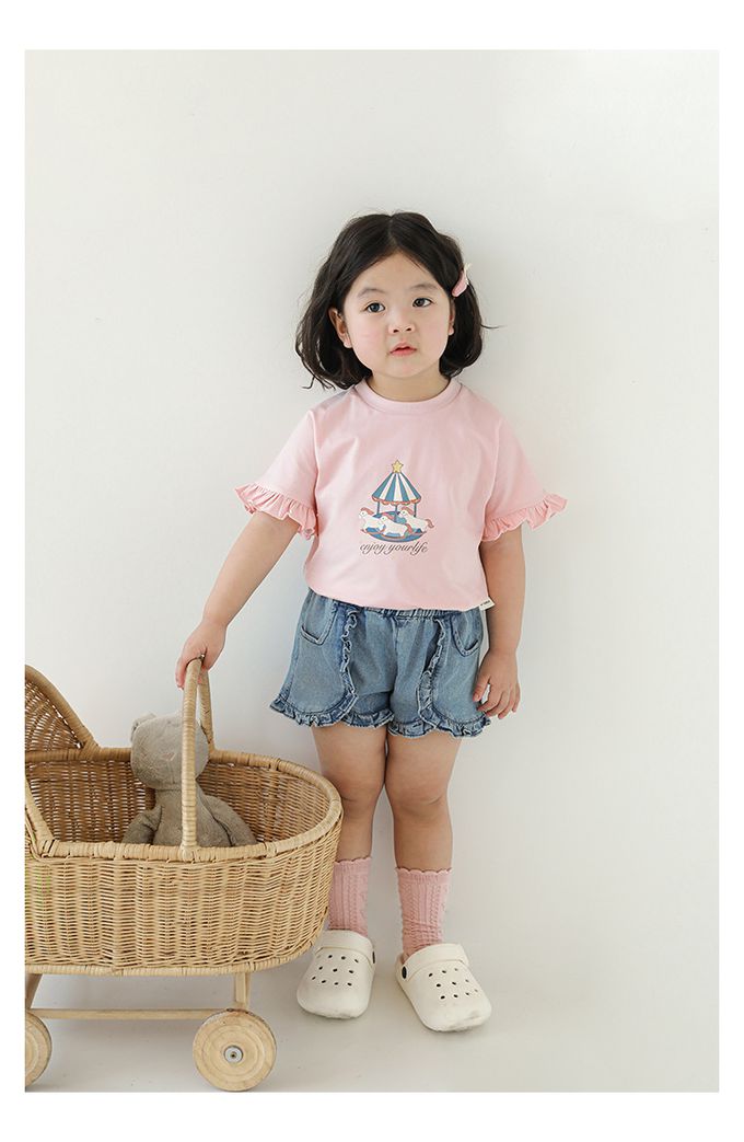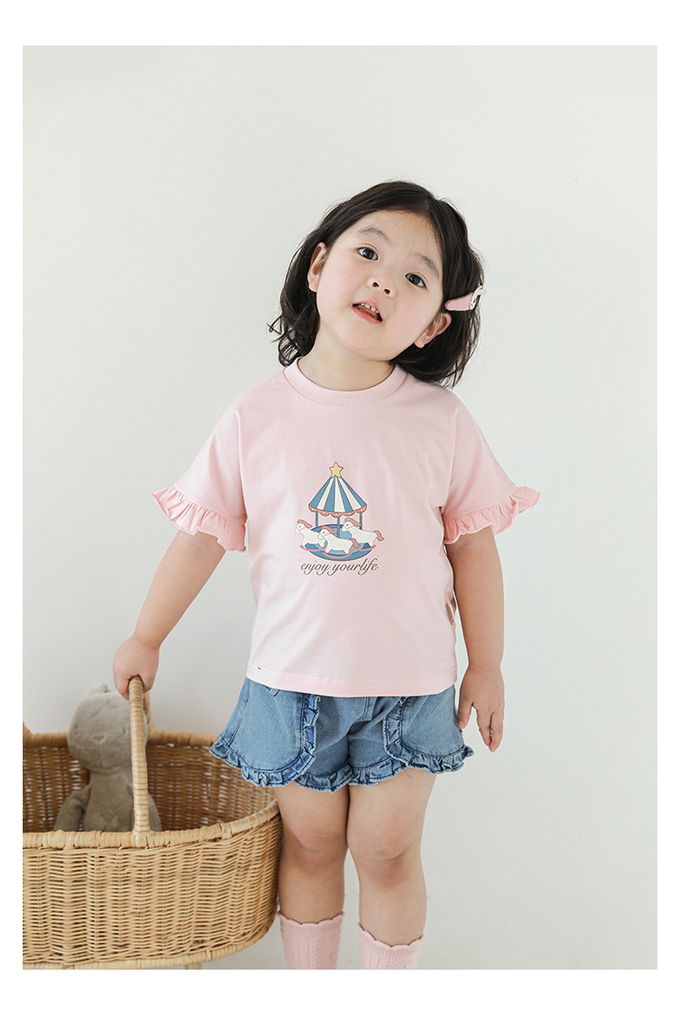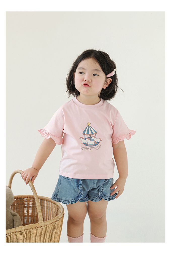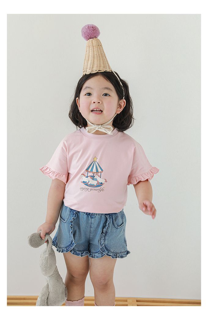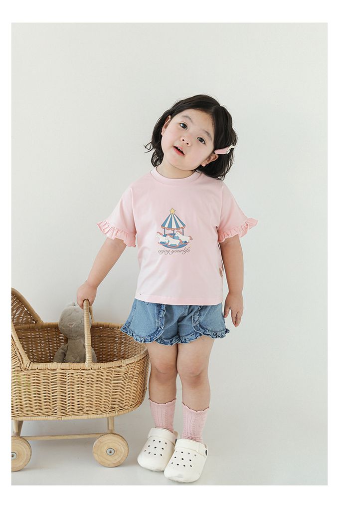 圓領木耳邊短袖上衣-旋轉木馬-粉色