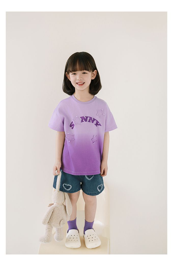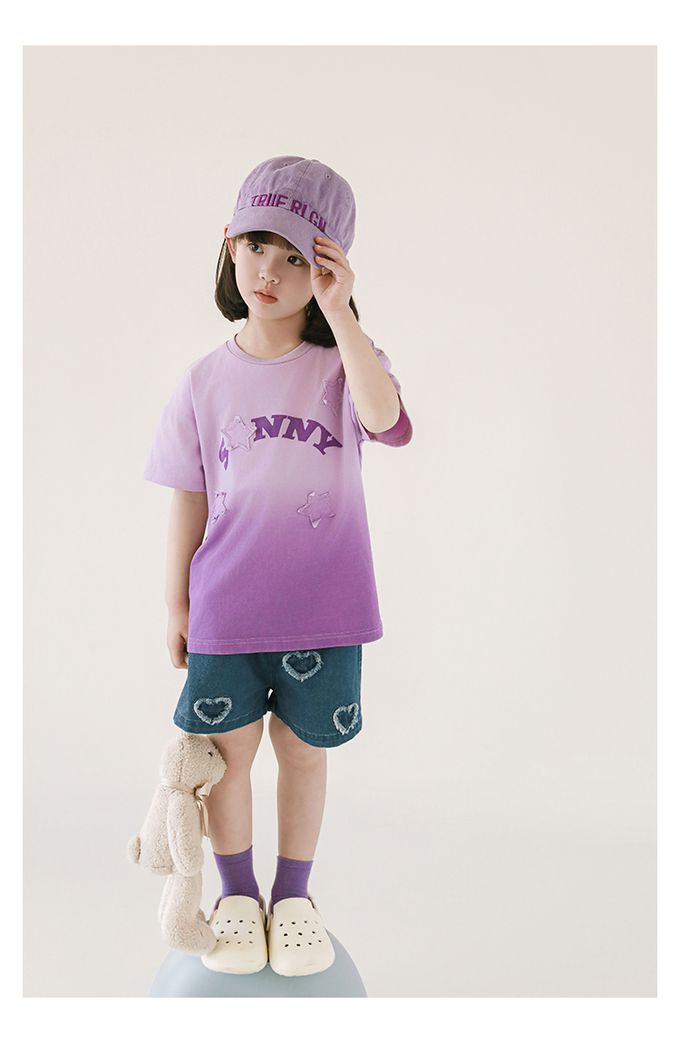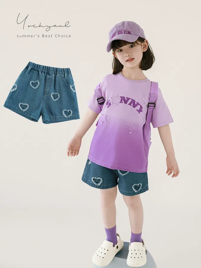 寬鬆褲腳+前片愛心貼布繡花裝飾,舒適美觀