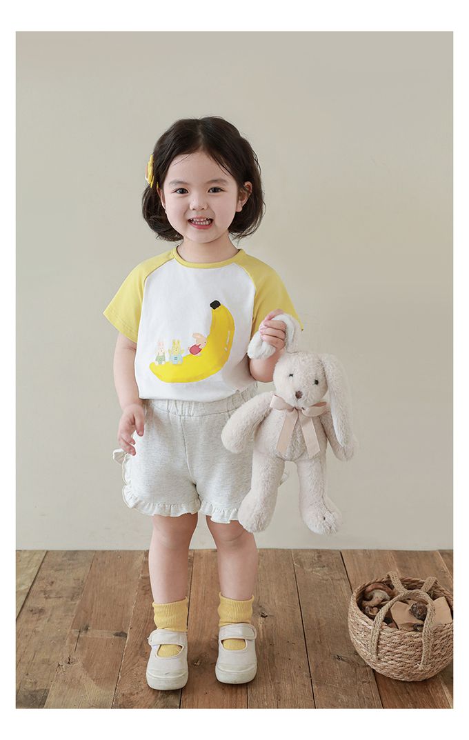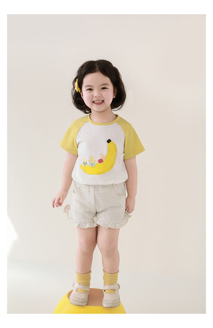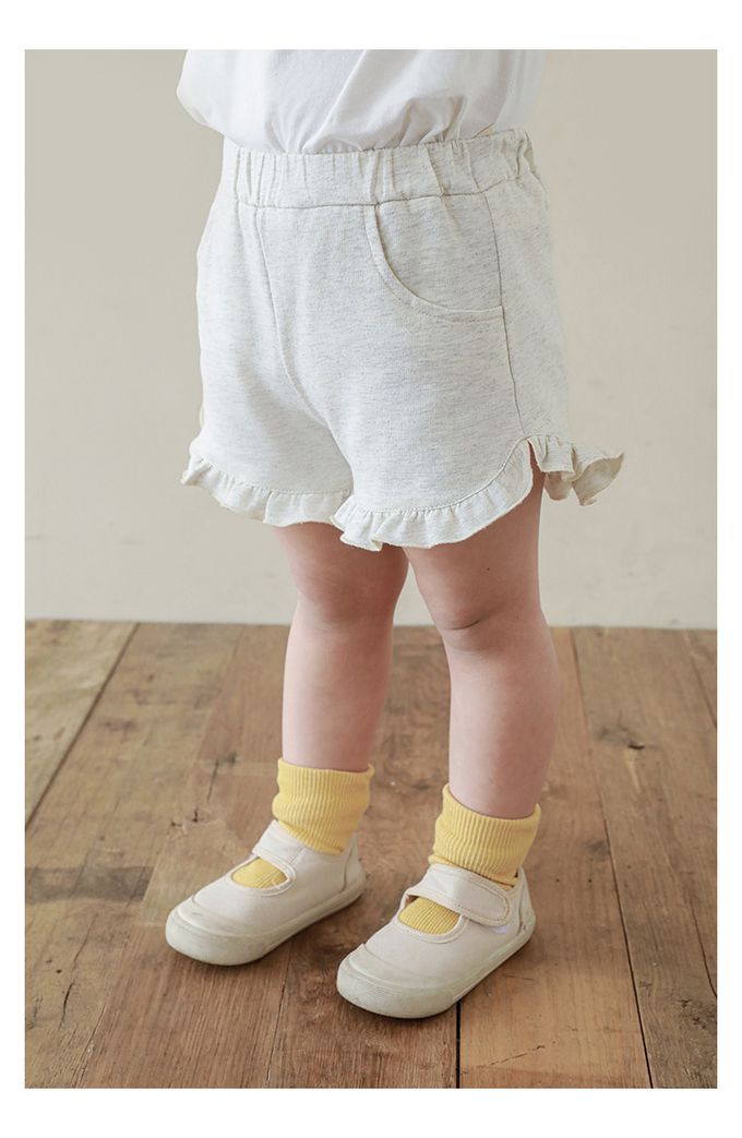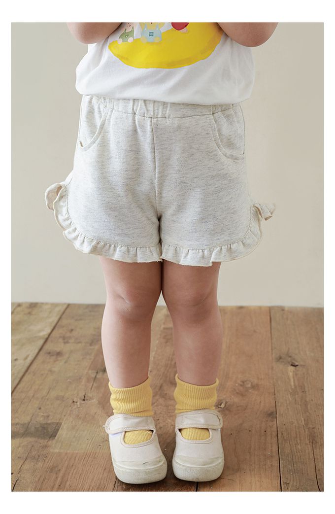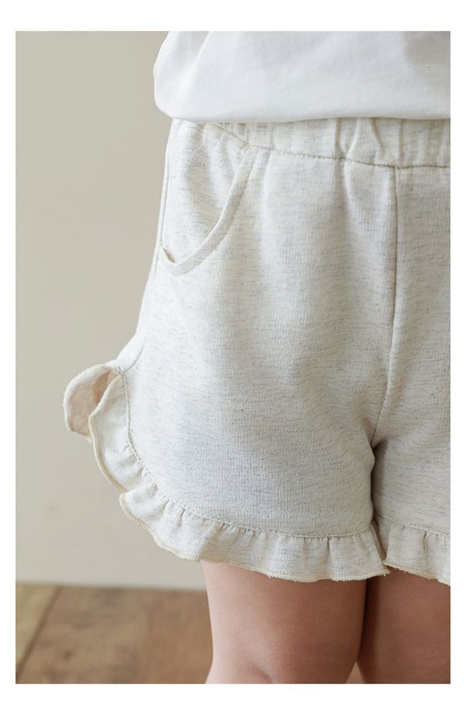 純棉腰鬆緊荷葉邊短褲-淺麻灰
