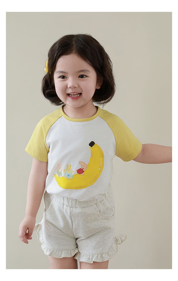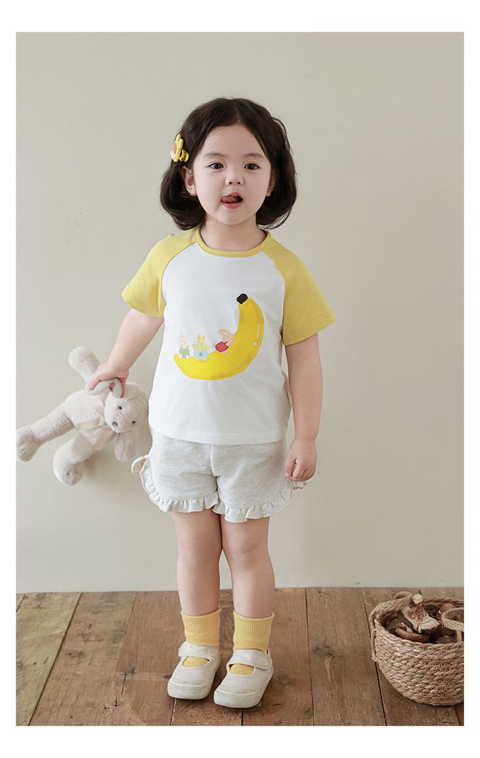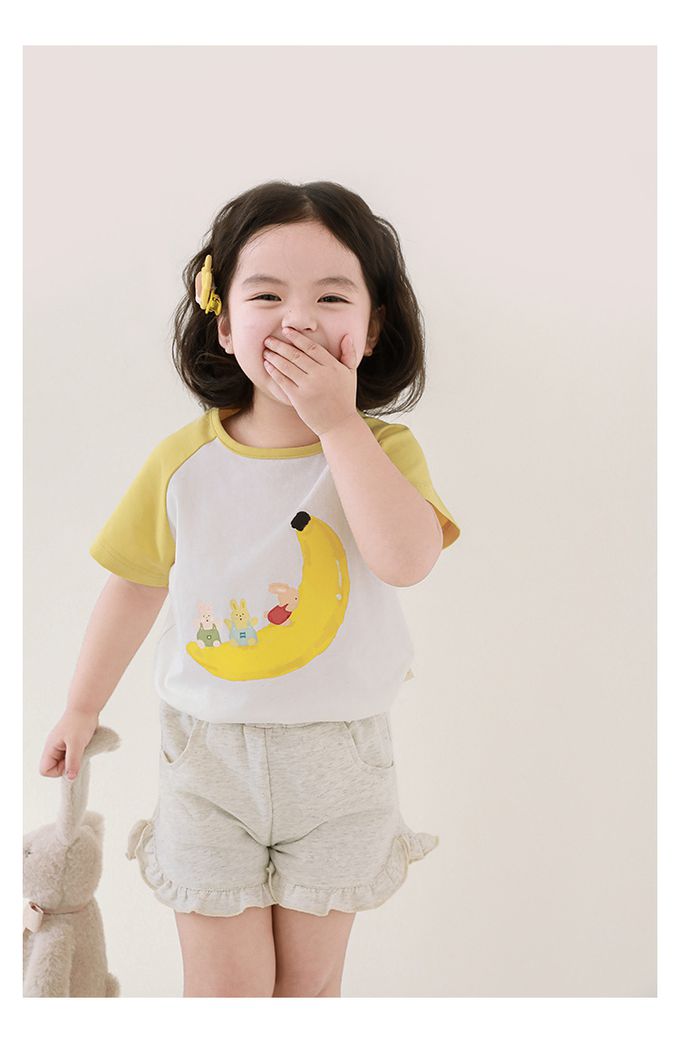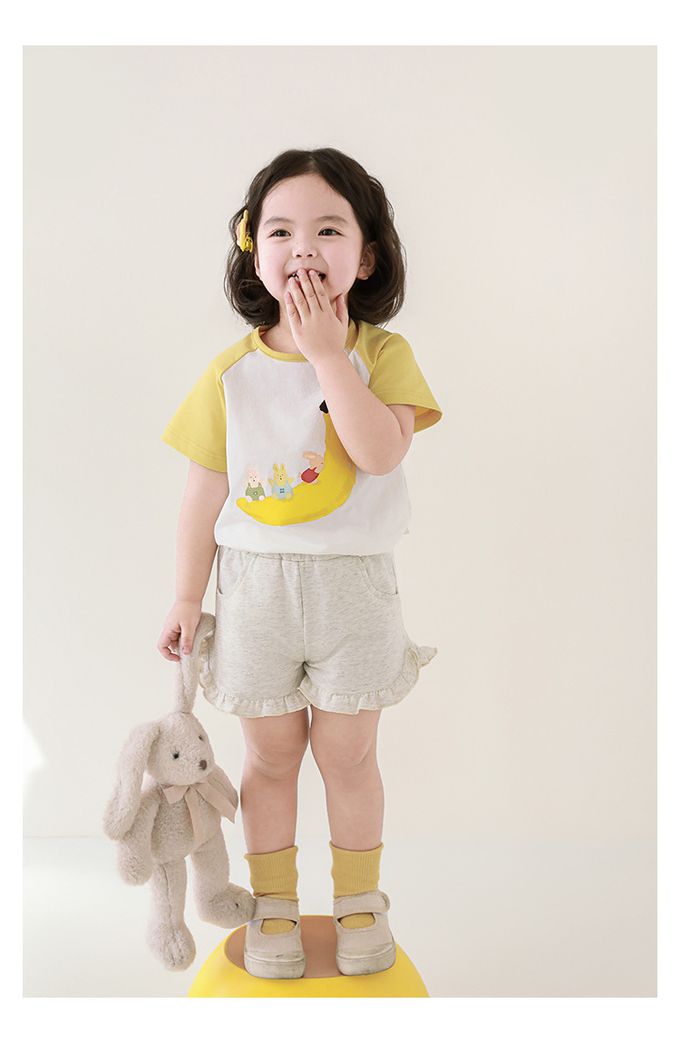 純棉腰鬆緊荷葉邊短褲-淺麻灰