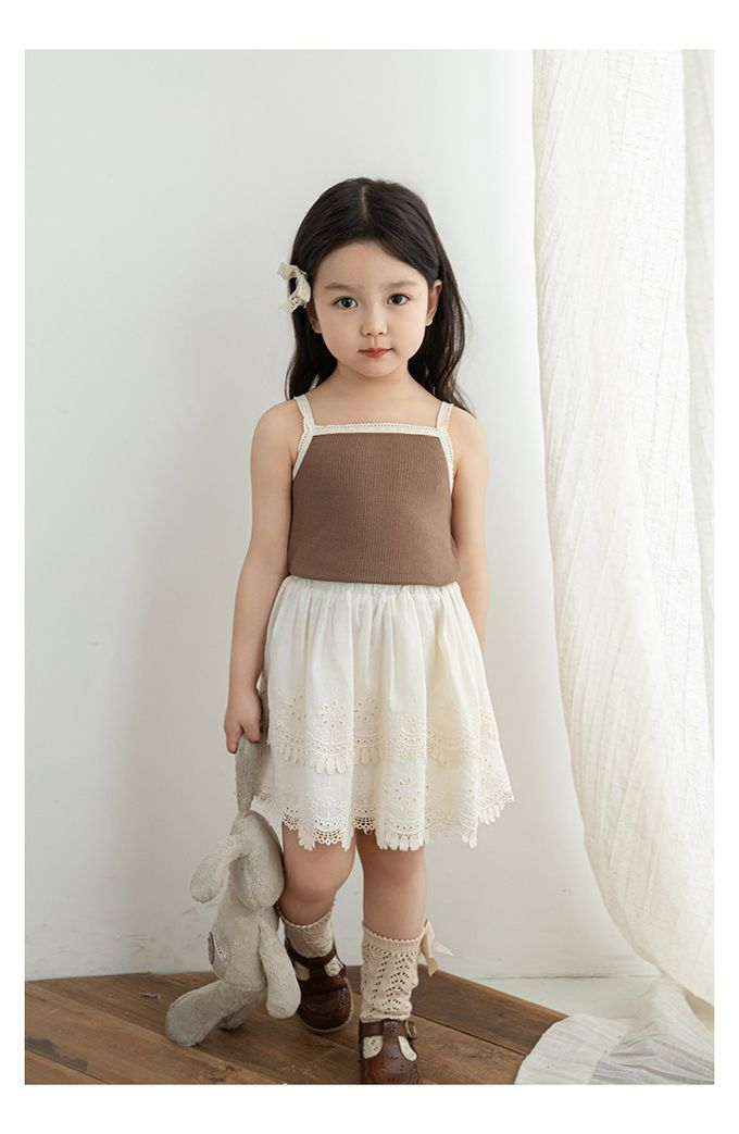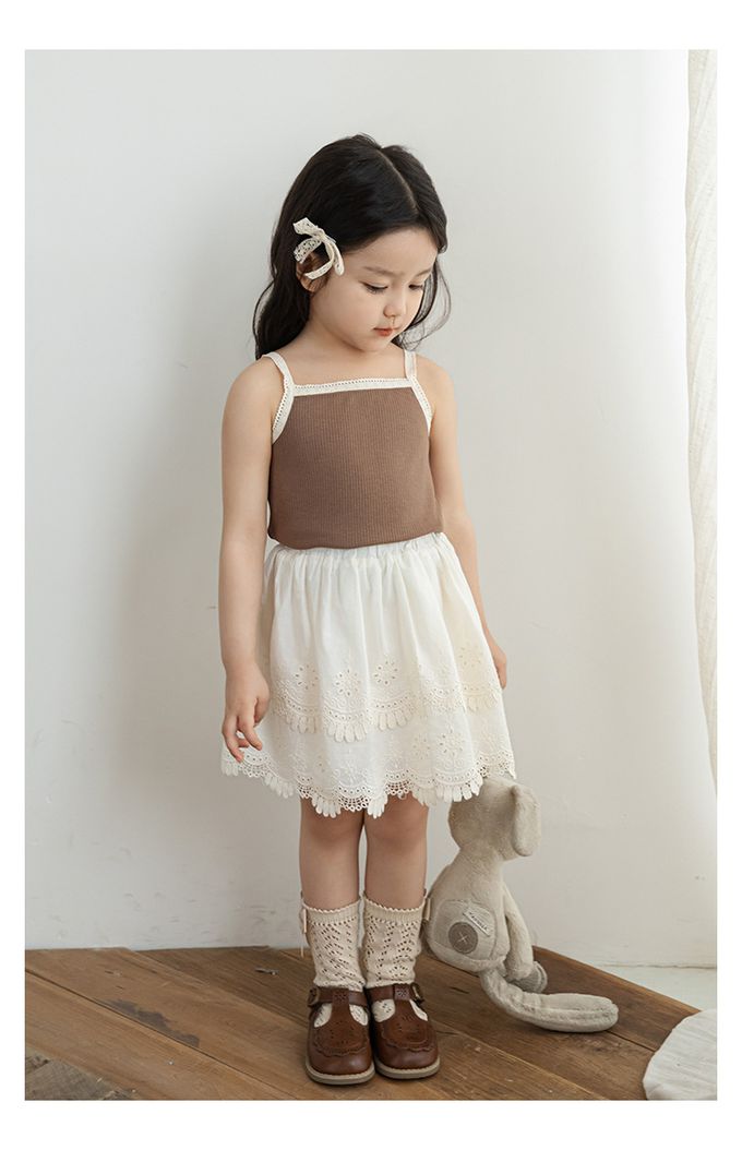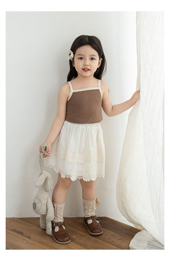 品名:純棉腰鬆緊蕾絲花邊短裙