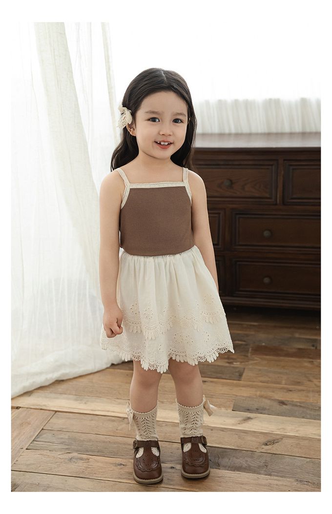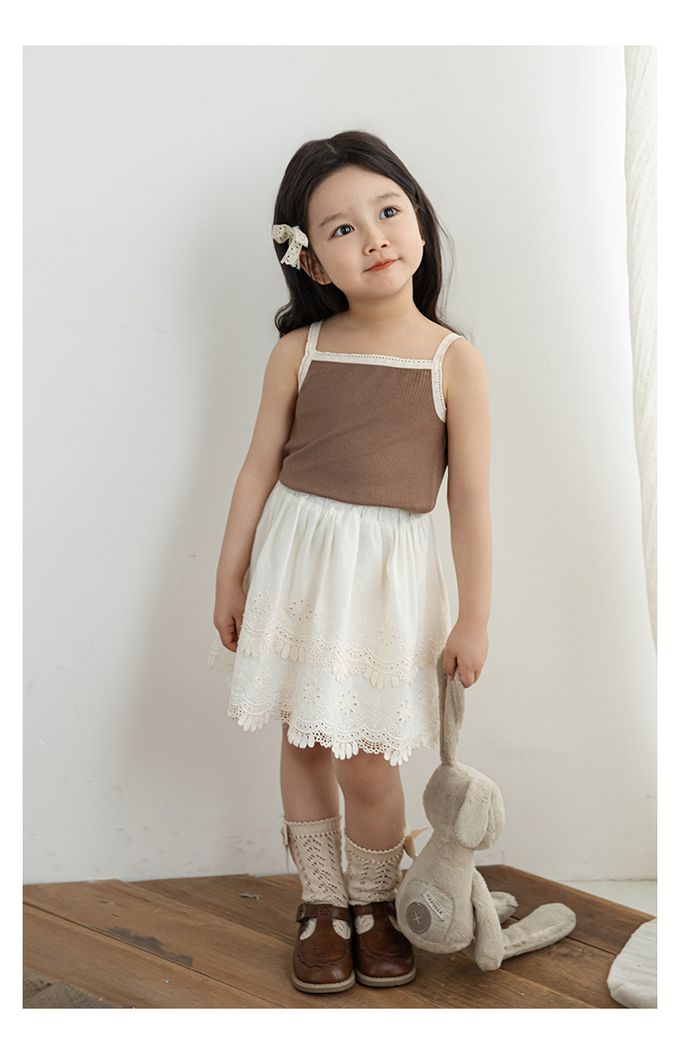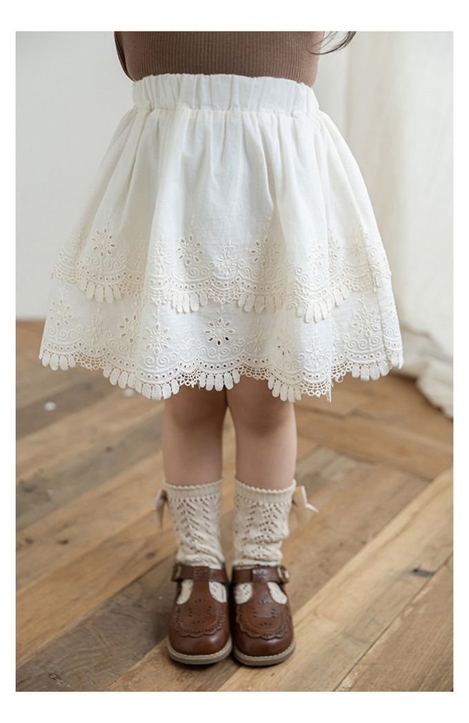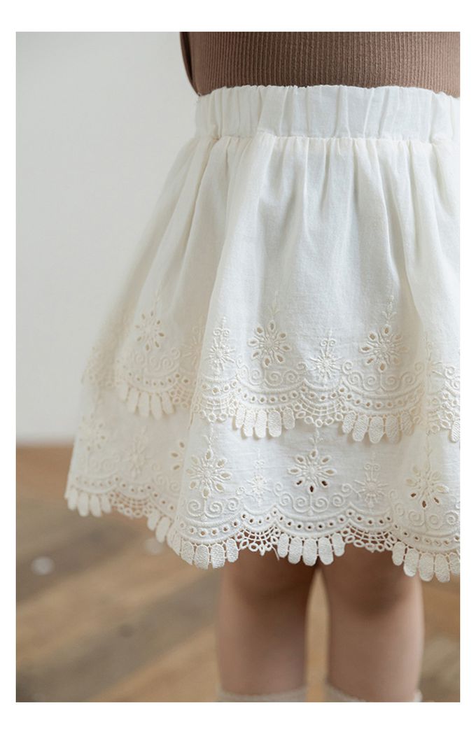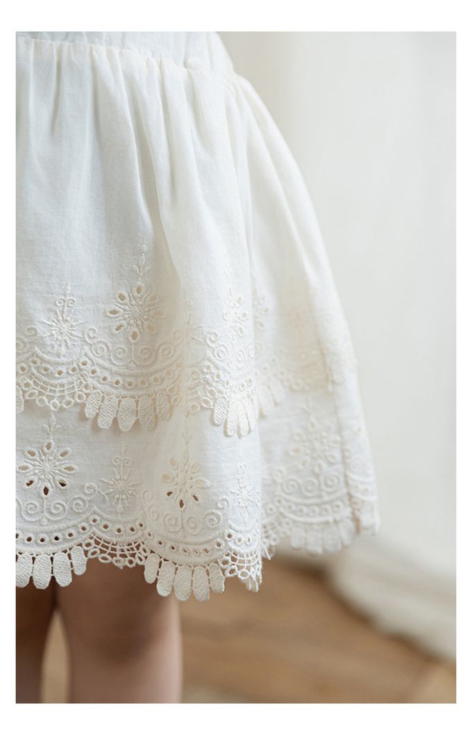 純棉腰鬆緊蕾絲花邊短裙-米色