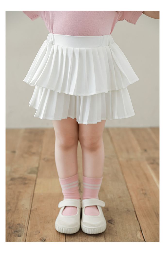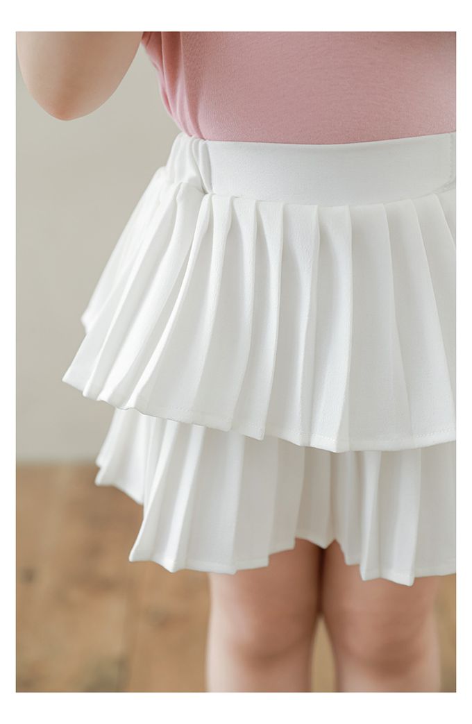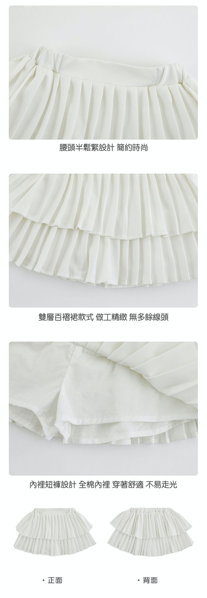 腰鬆緊雙層百摺短裙-內裡安全褲-白色