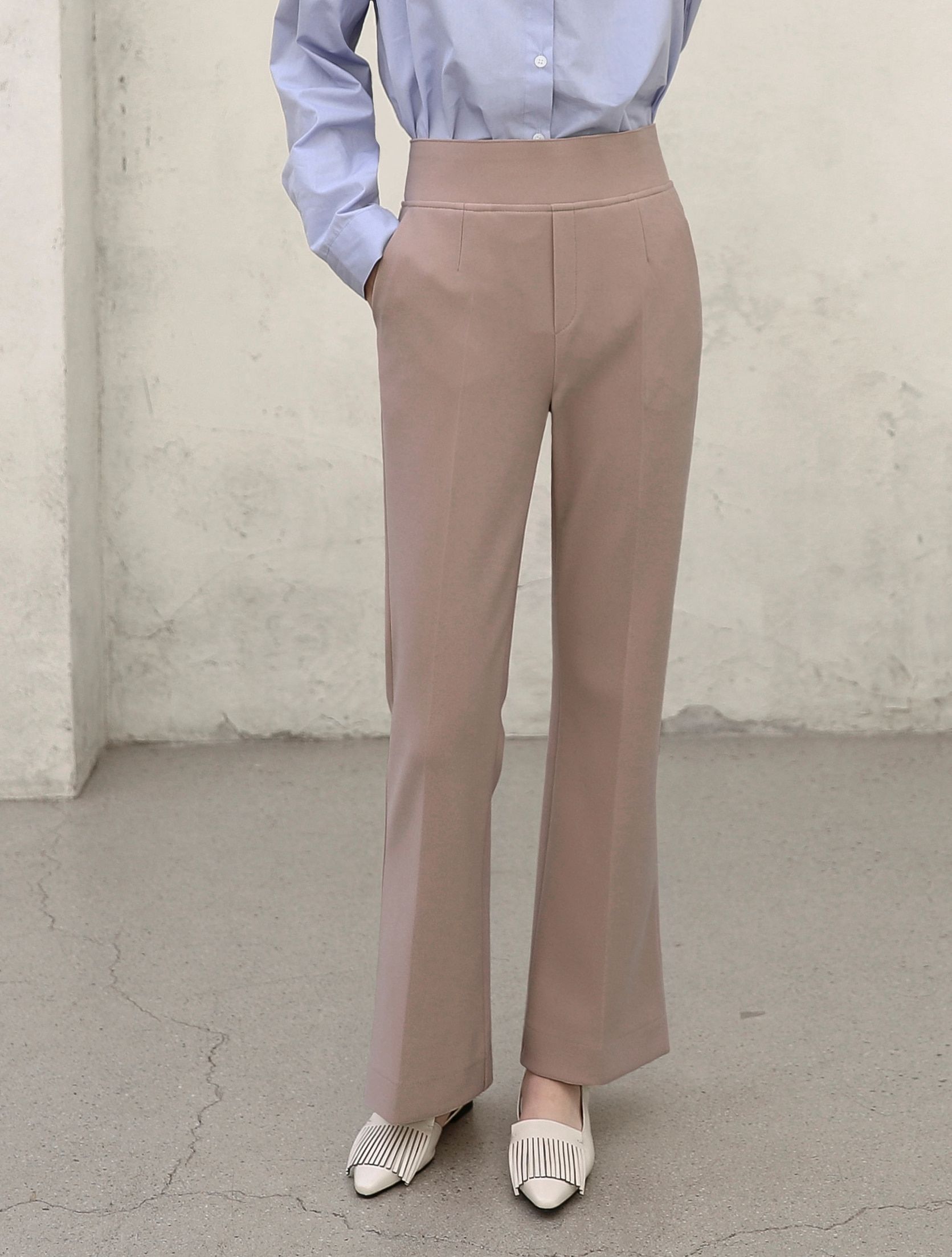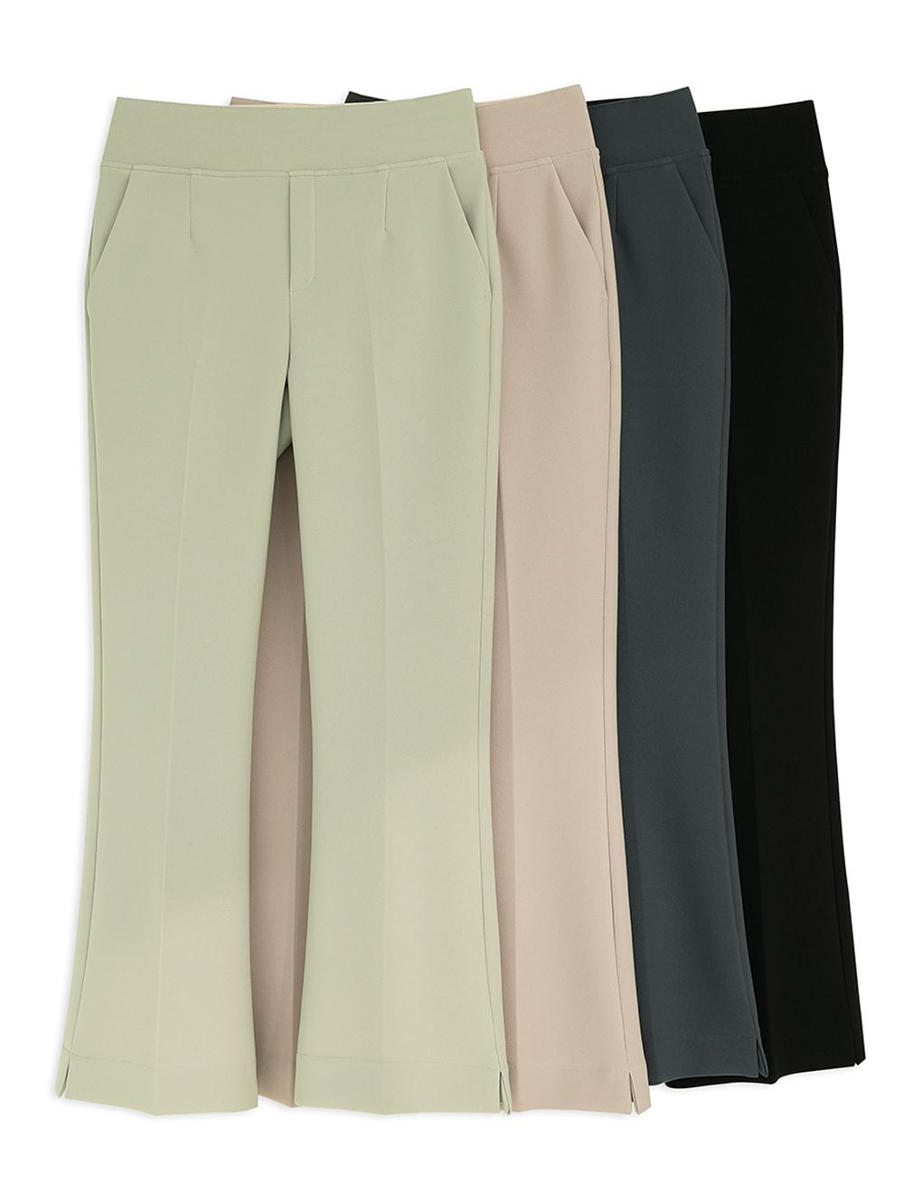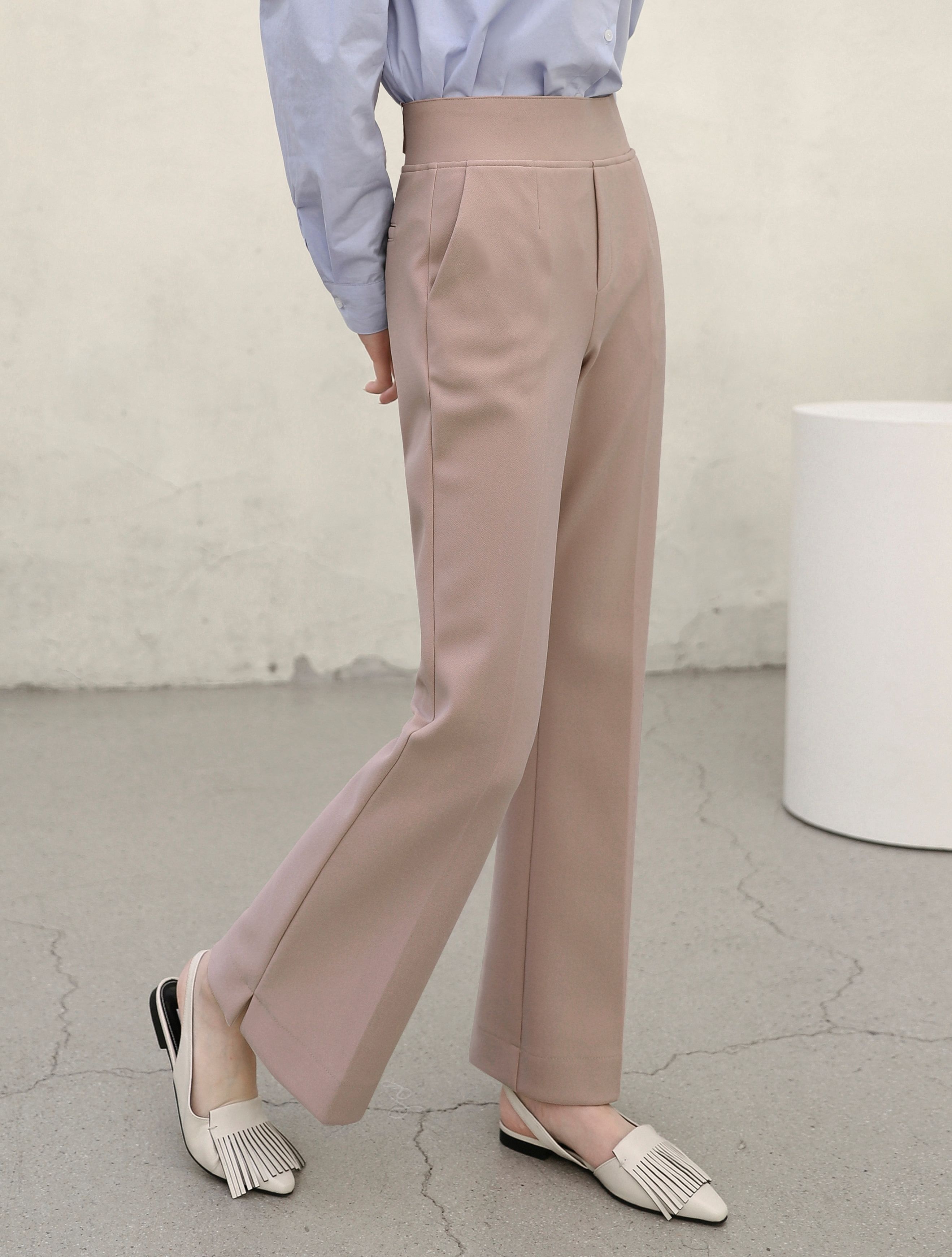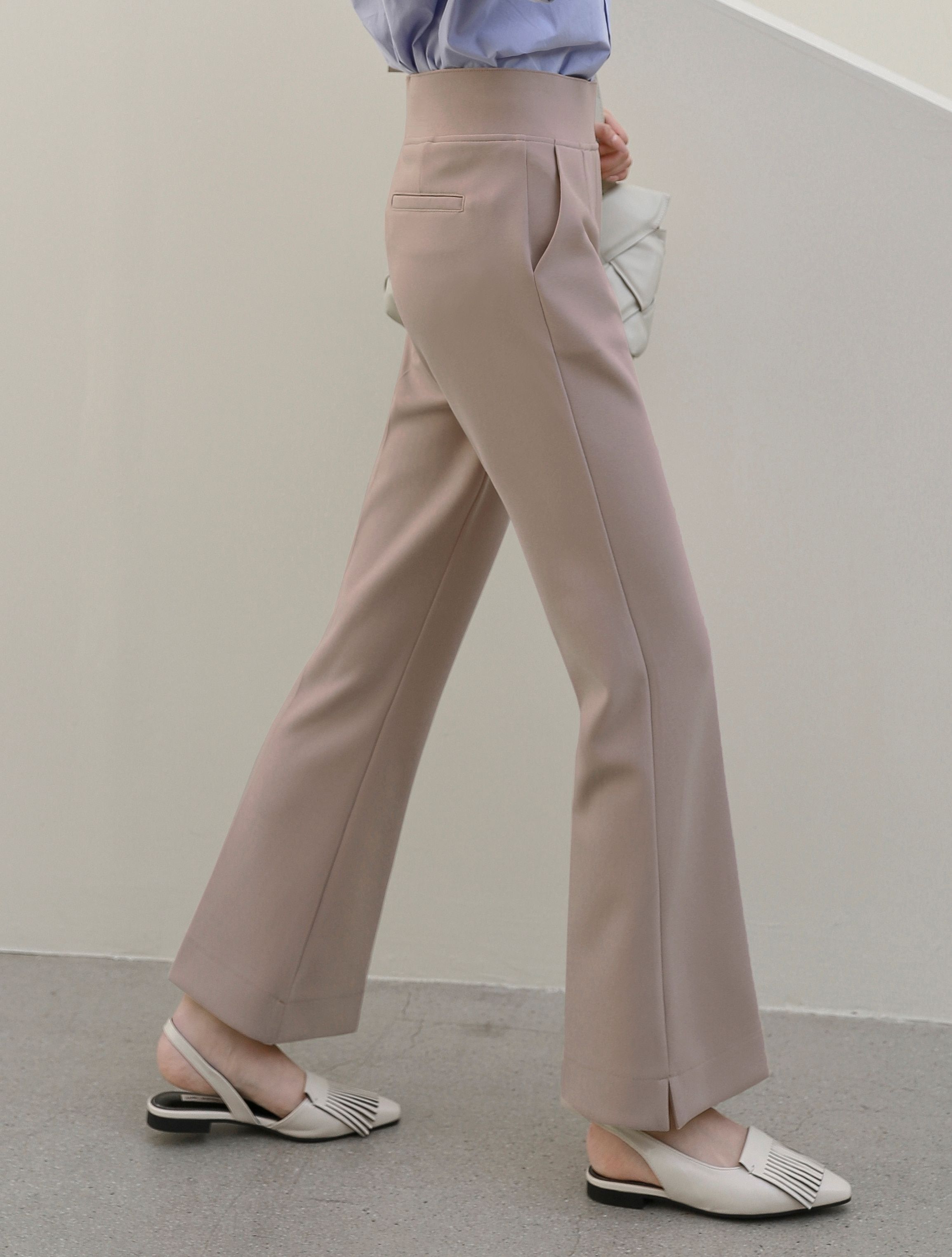 喇叭褲腳有微微開衩,可將腿型線條拉得更優雅,同時也方便活動!