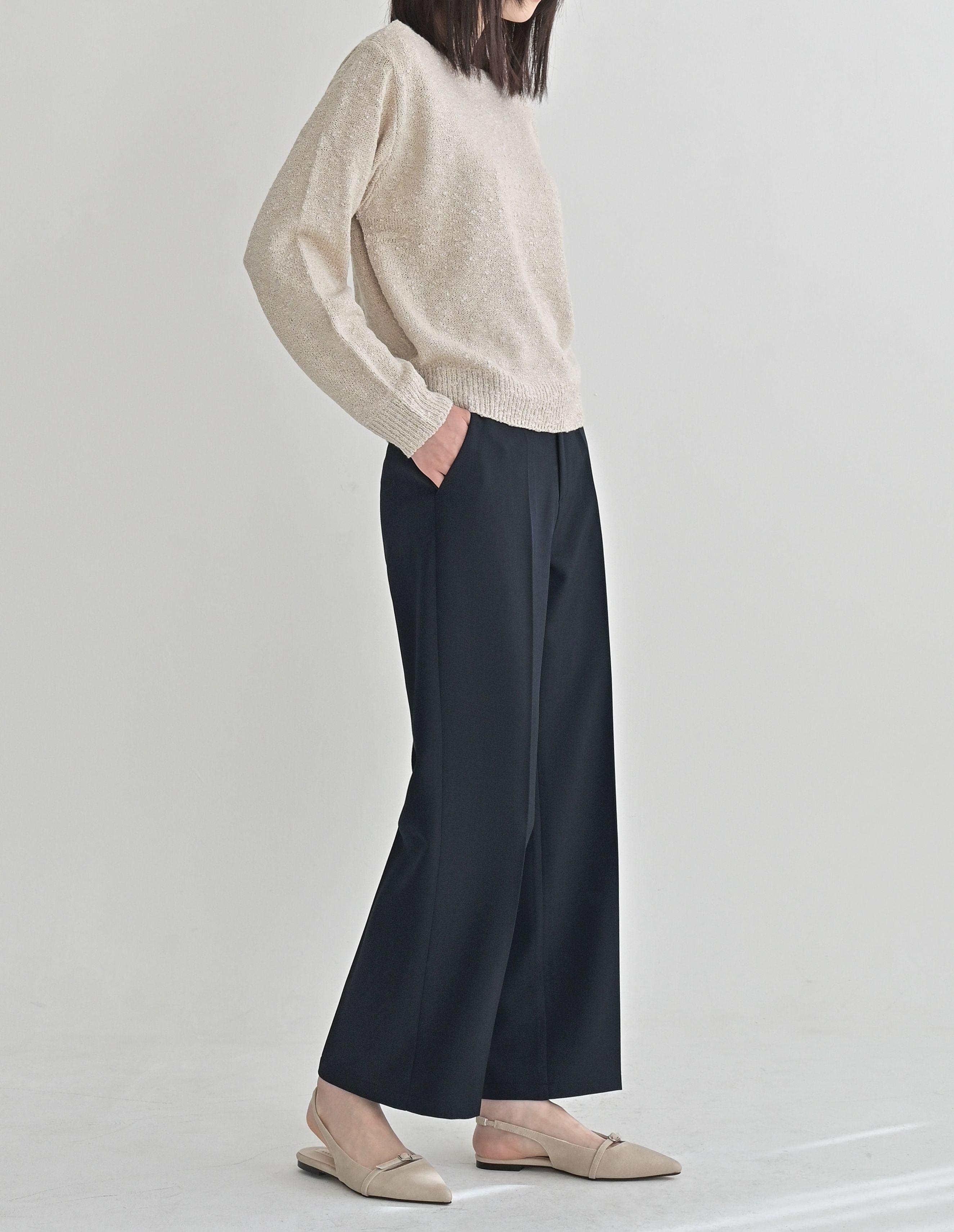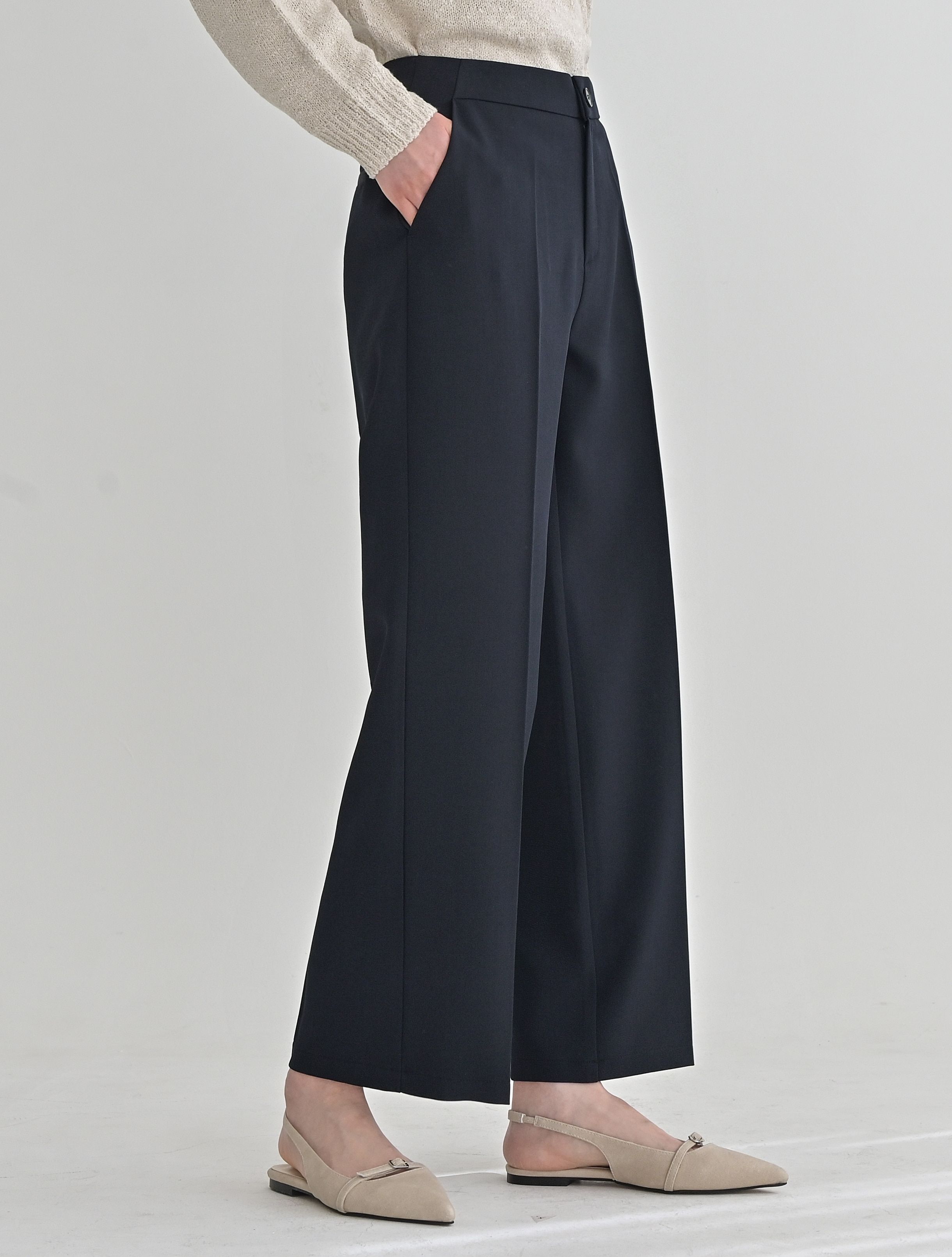 • 品名:Domingoblue 後隱藏鬆緊腰一字西裝寬褲