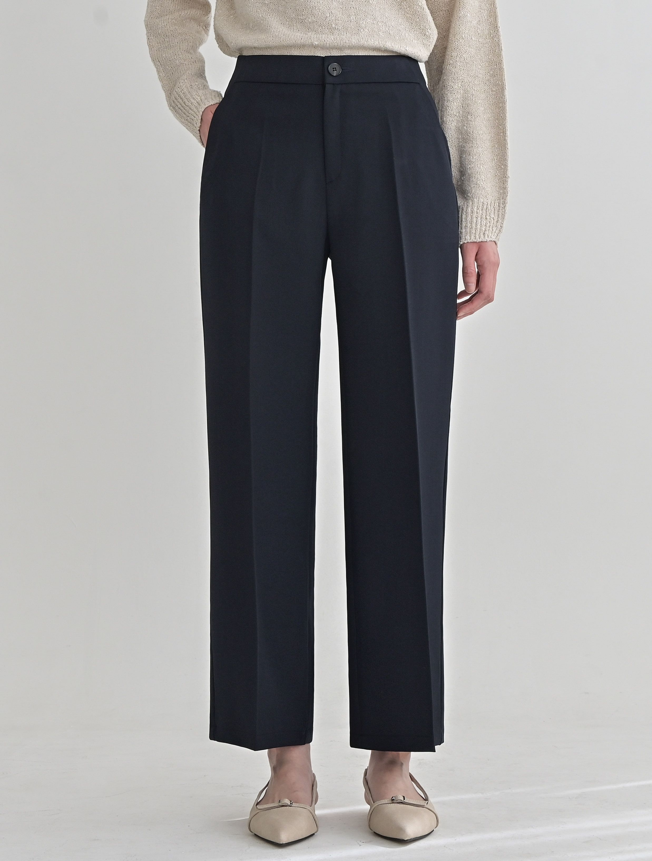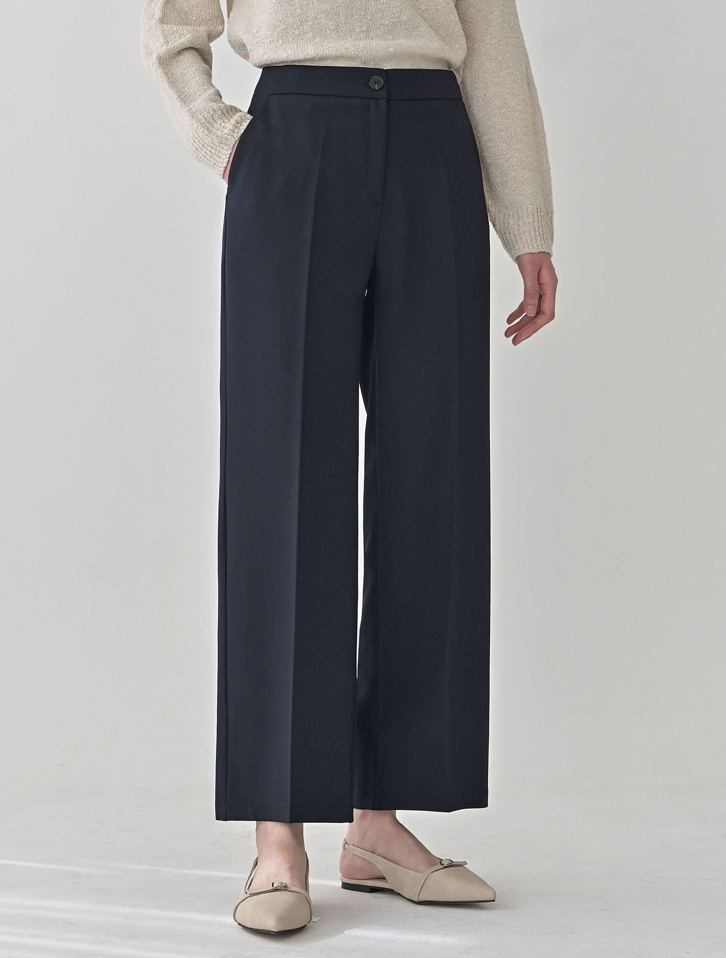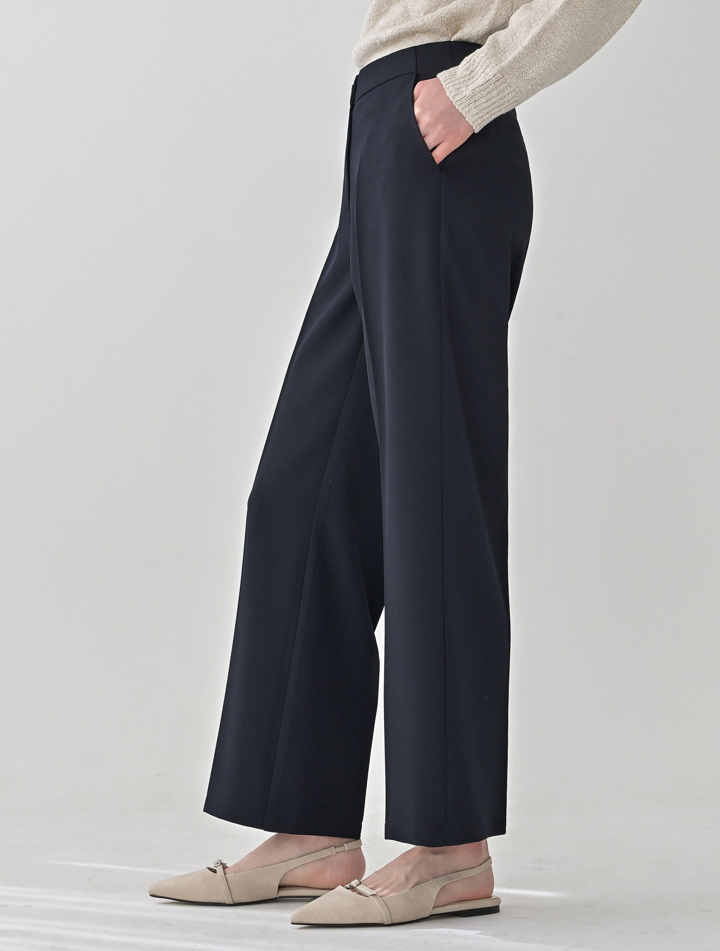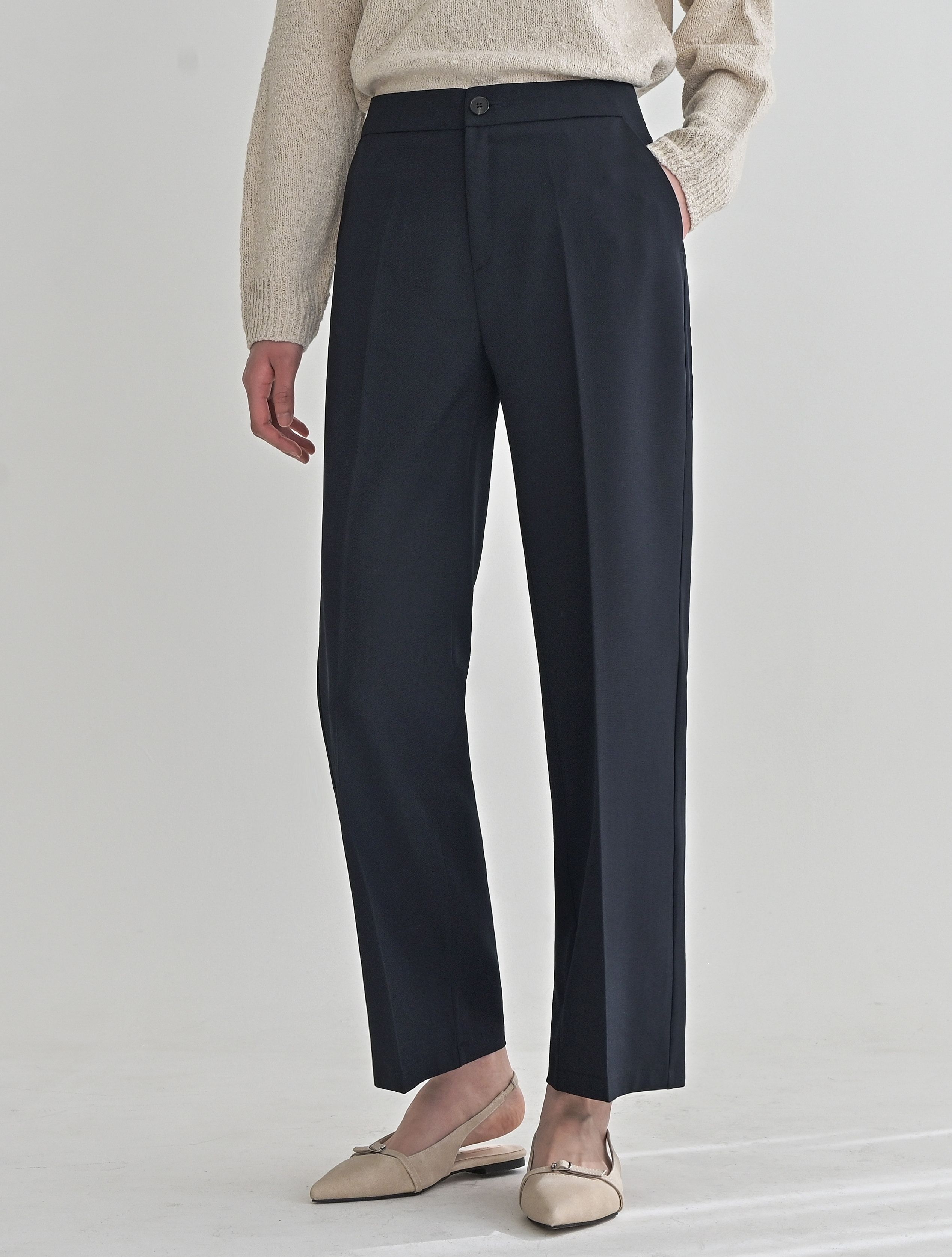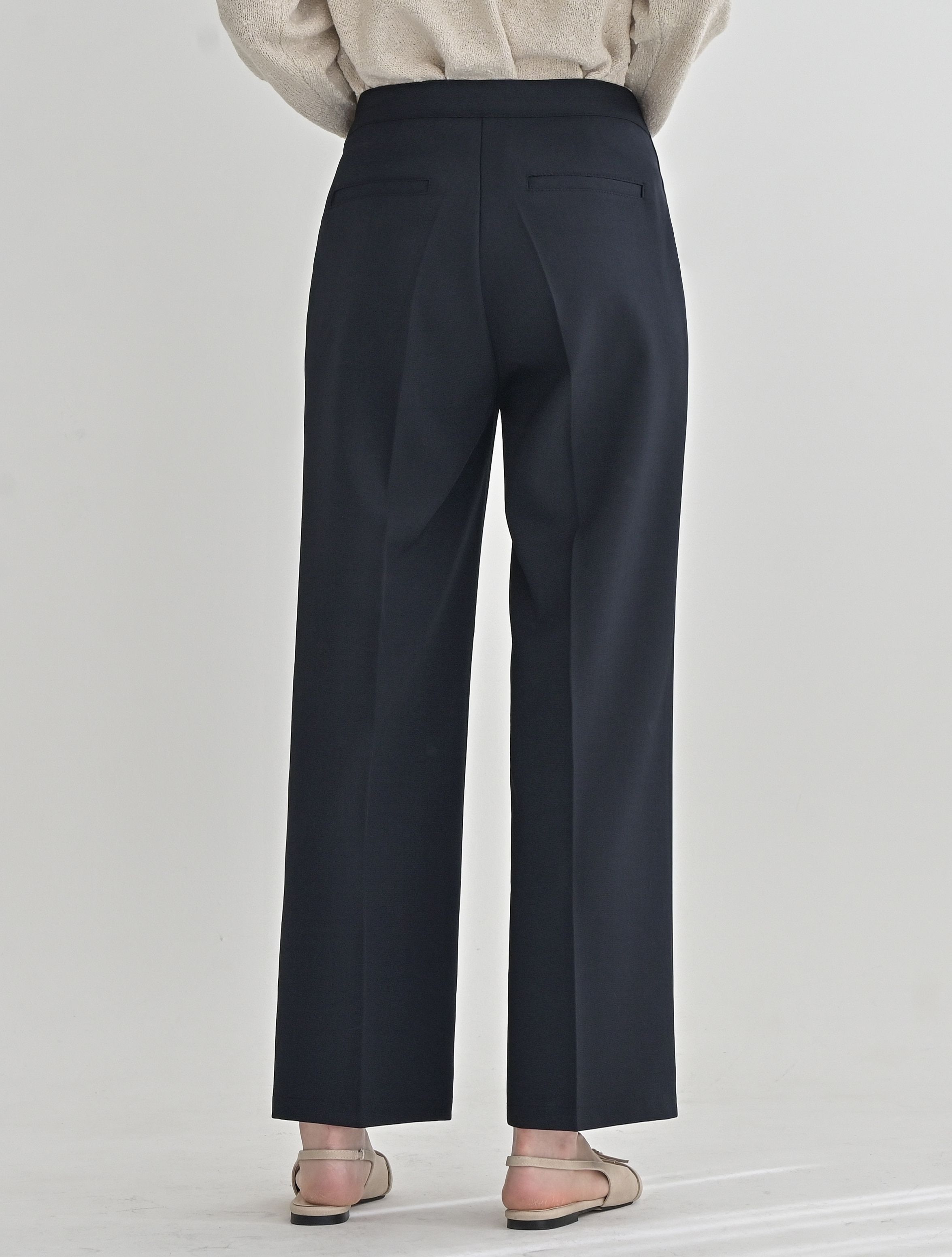 韓國女裝連線 - Domingoblue 後隱藏鬆緊腰一字西裝寬褲-海軍藍