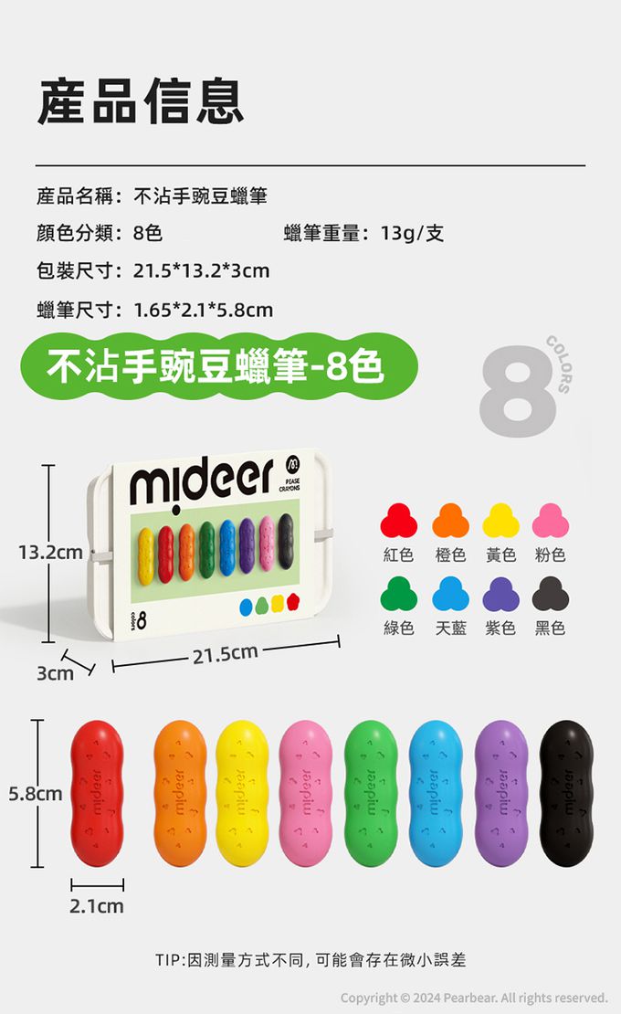 MiDeer - 不沾手豌豆蠟筆(8色)