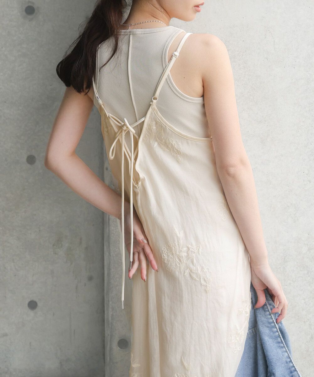 日本 Bab - 浪漫花卉刺繡細肩帶洋裝-淺灰