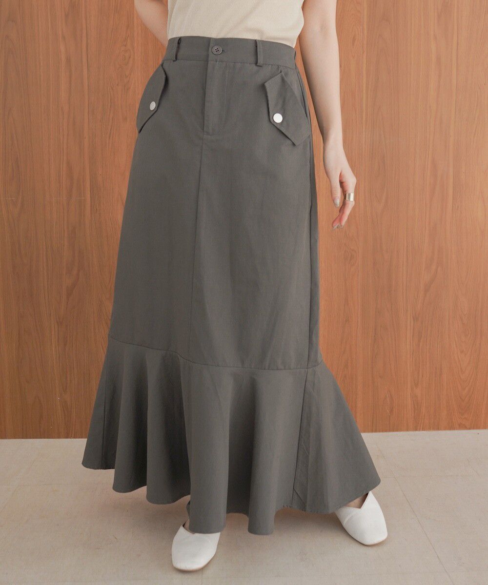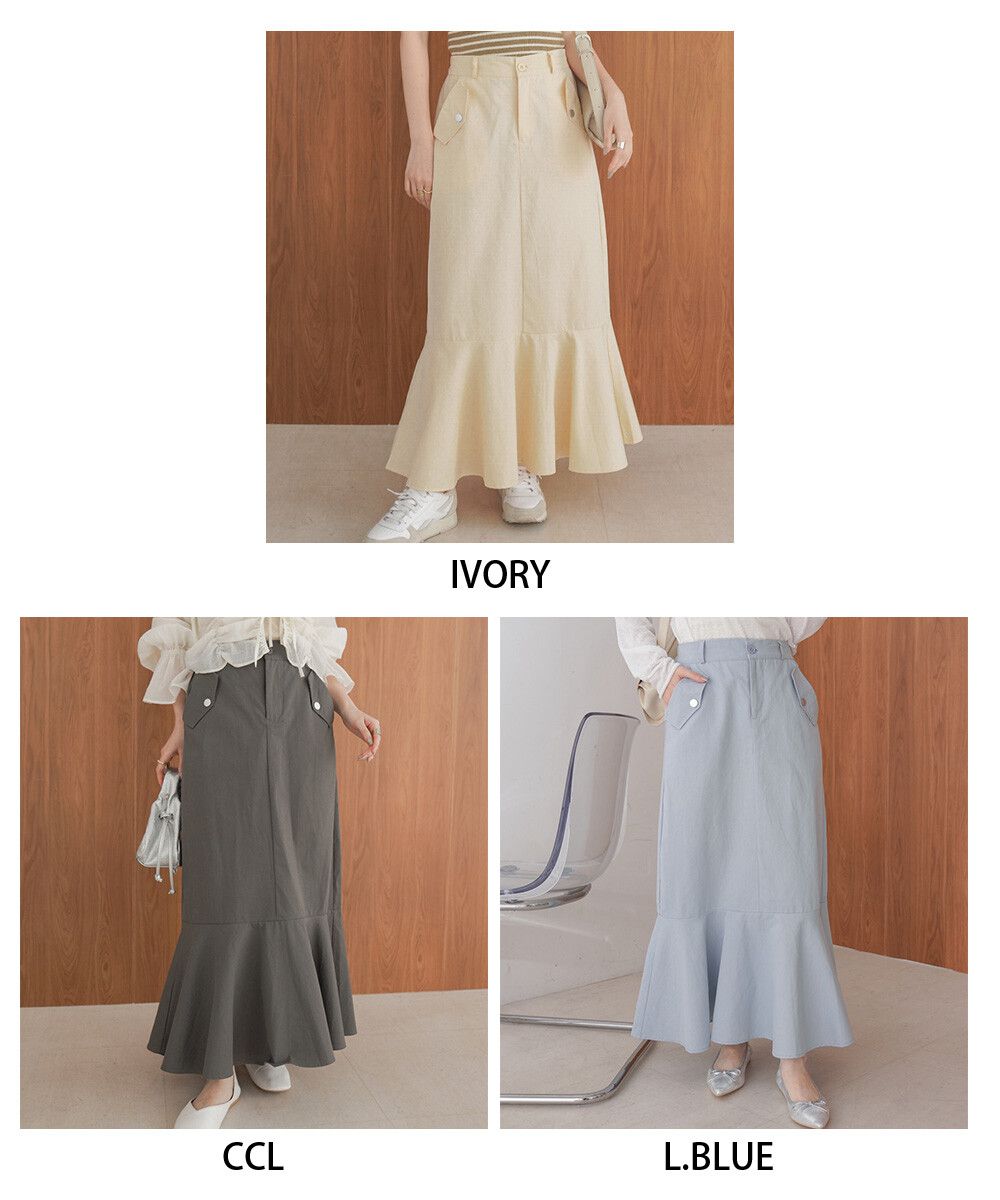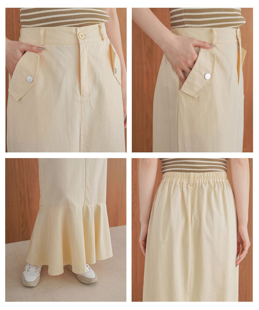 • 品名:側口袋優雅休閒斜紋布魚尾裙