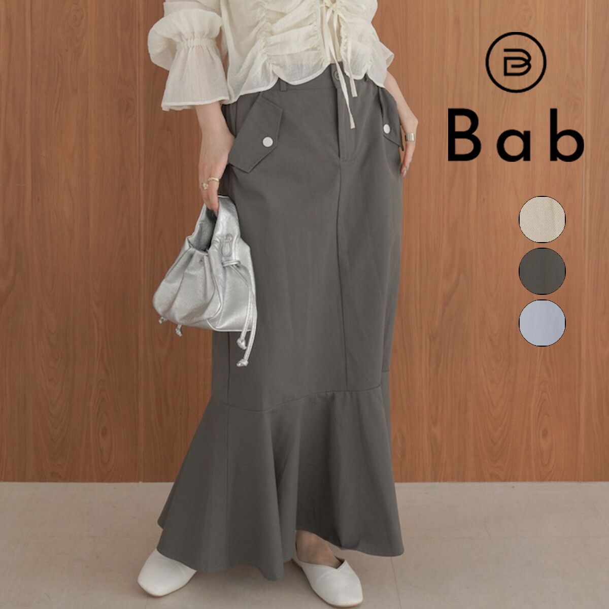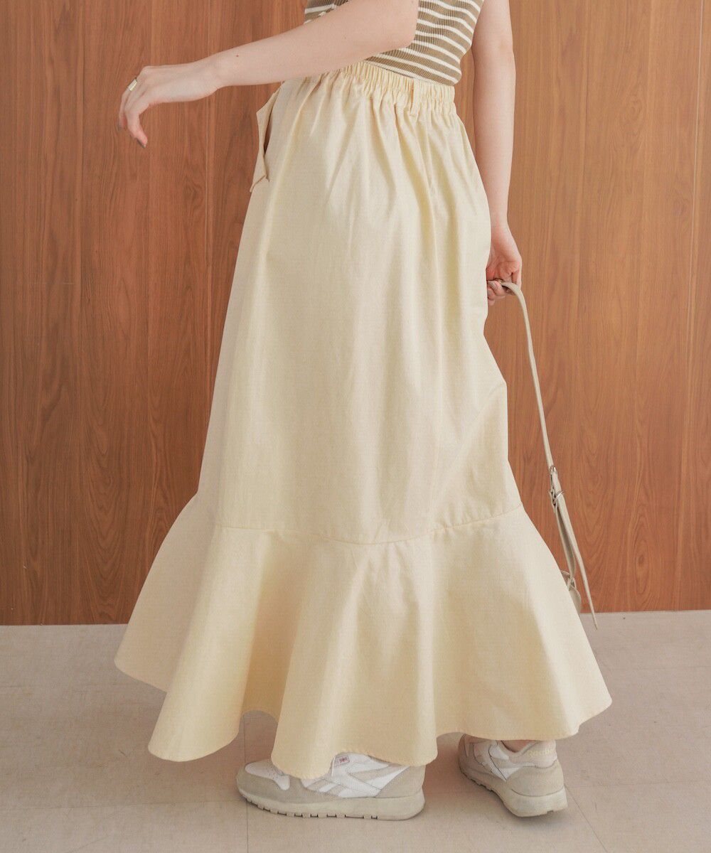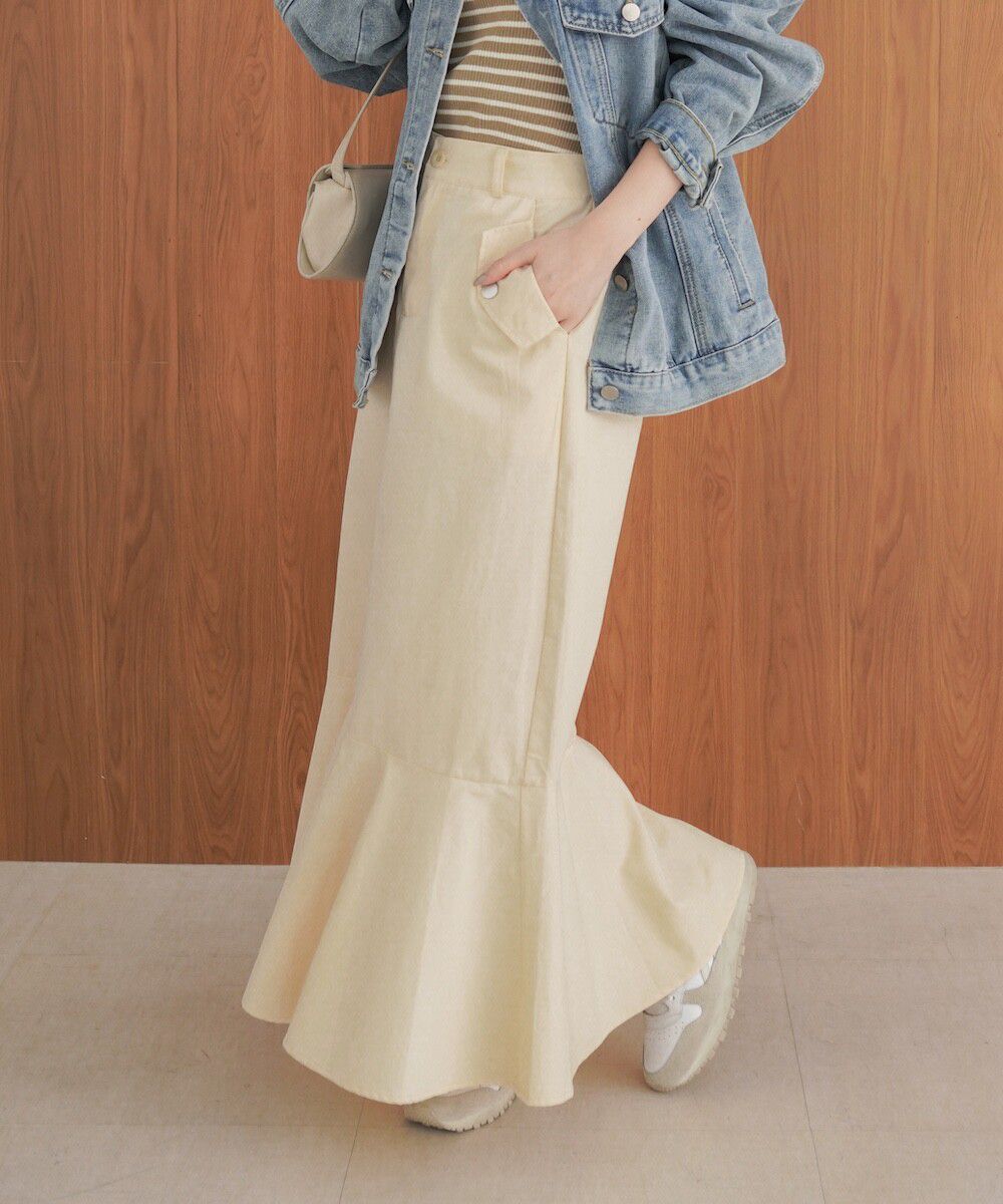 日本 Bab - 側口袋優雅休閒斜紋布魚尾裙-象牙米 (M)