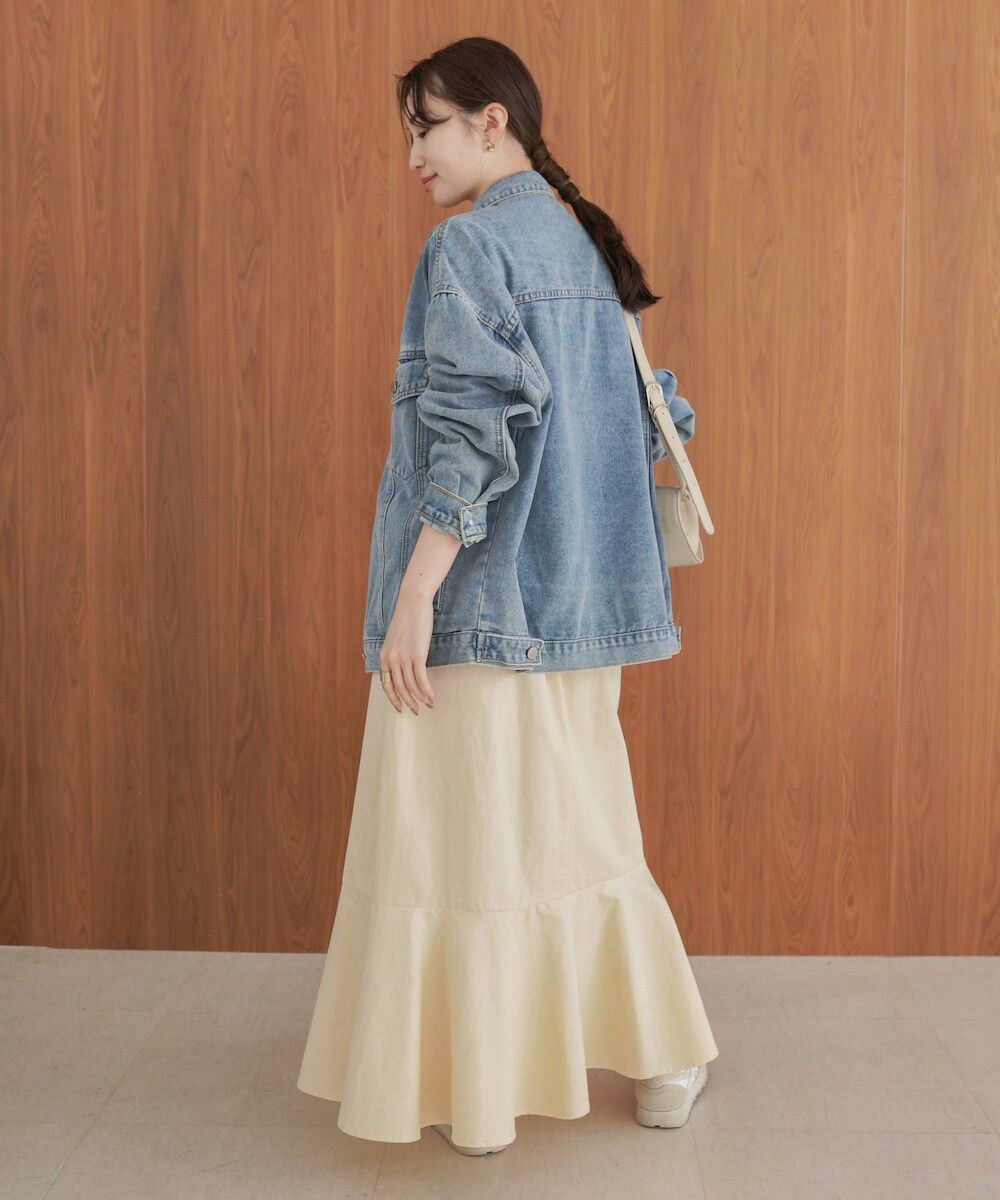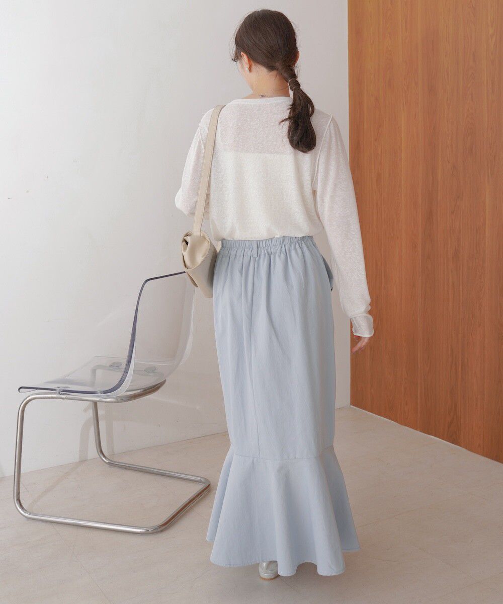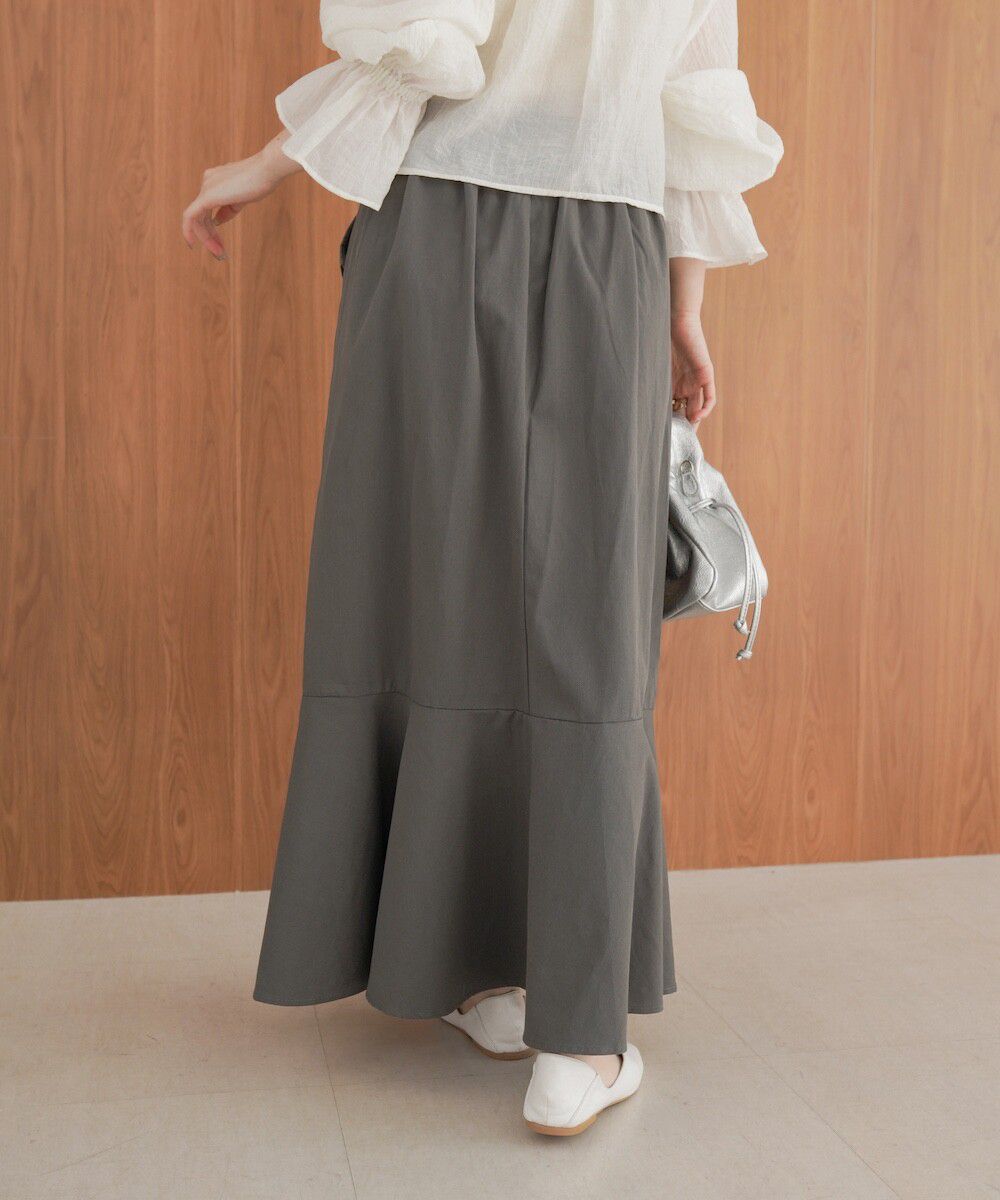 日本 Bab - 側口袋優雅休閒斜紋布魚尾裙-象牙米 (M)