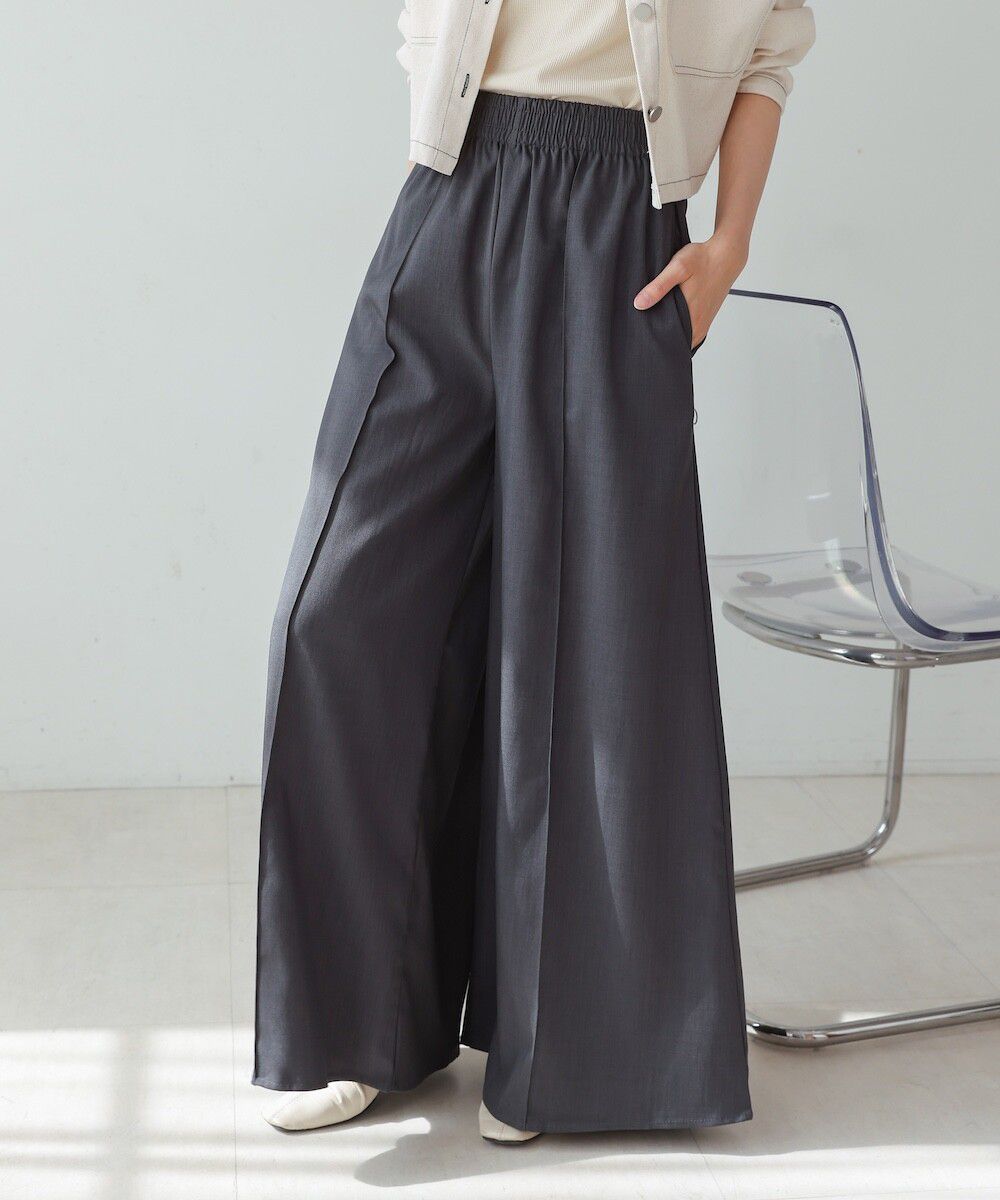 日本 Bab - 整潔感舒適柔滑大寬褲-灰黑 (M)