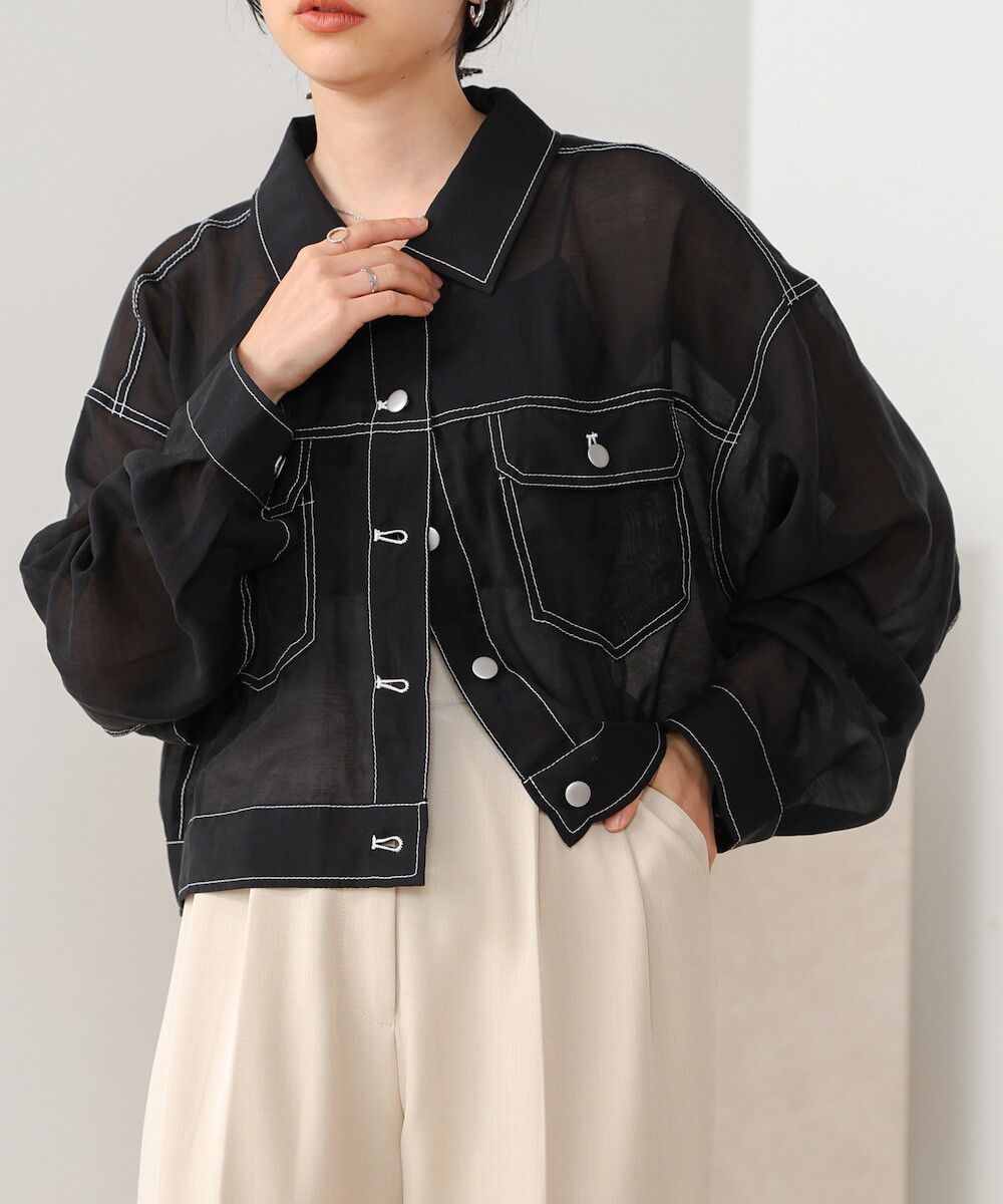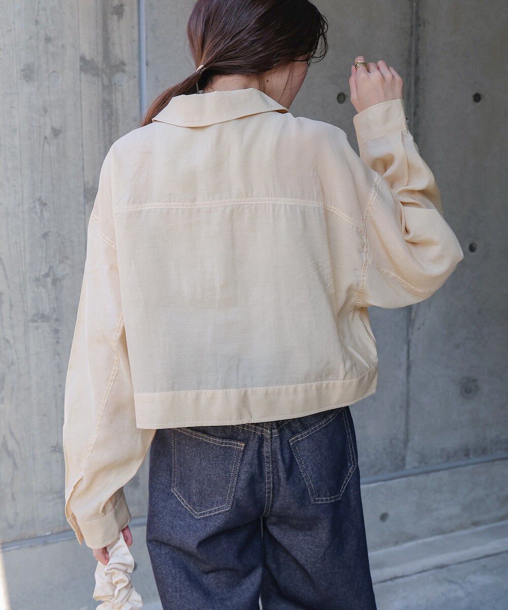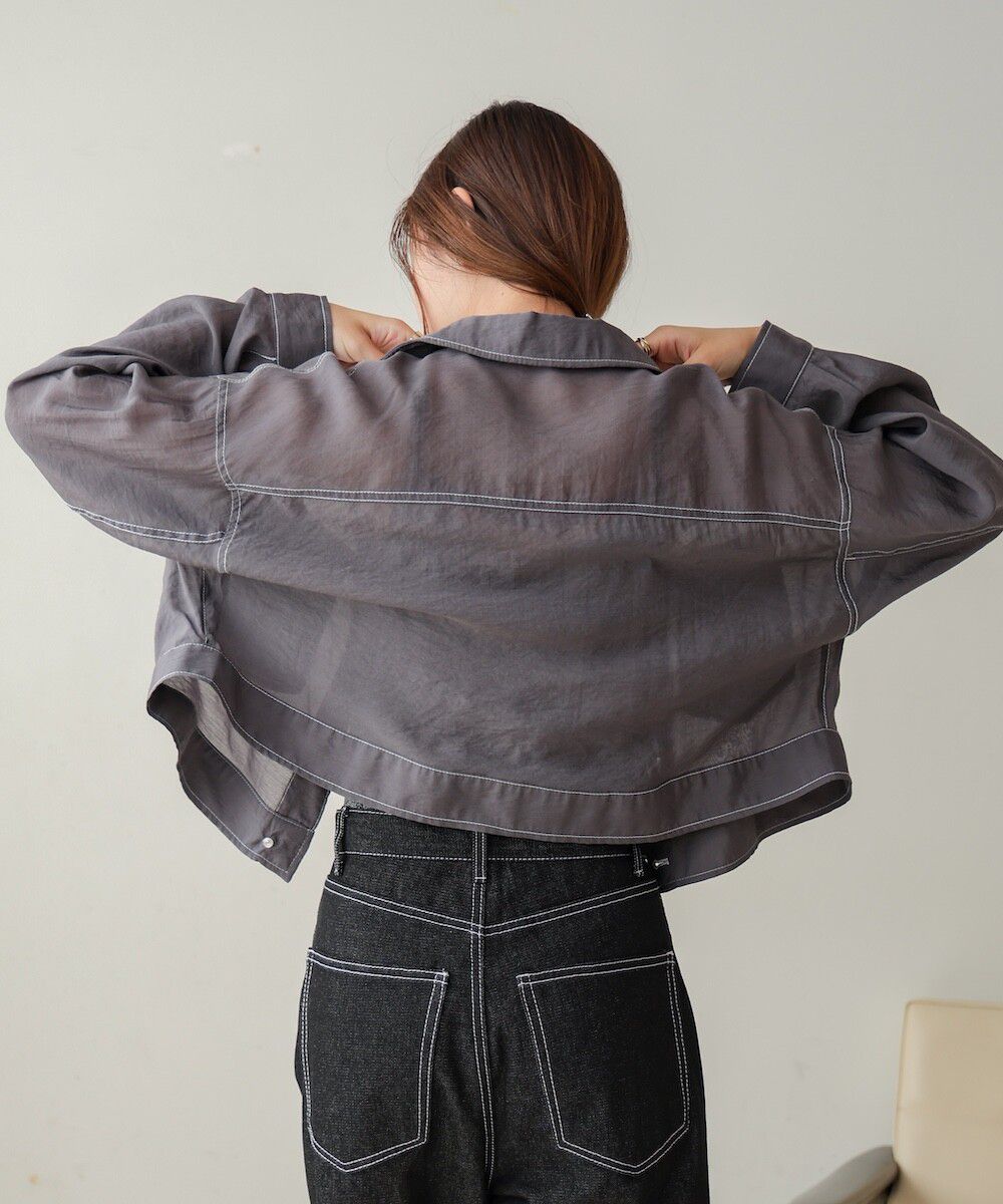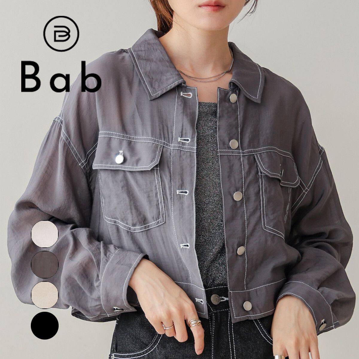 日本 Bab - 透膚質感俐落縫線短版夾克-米杏