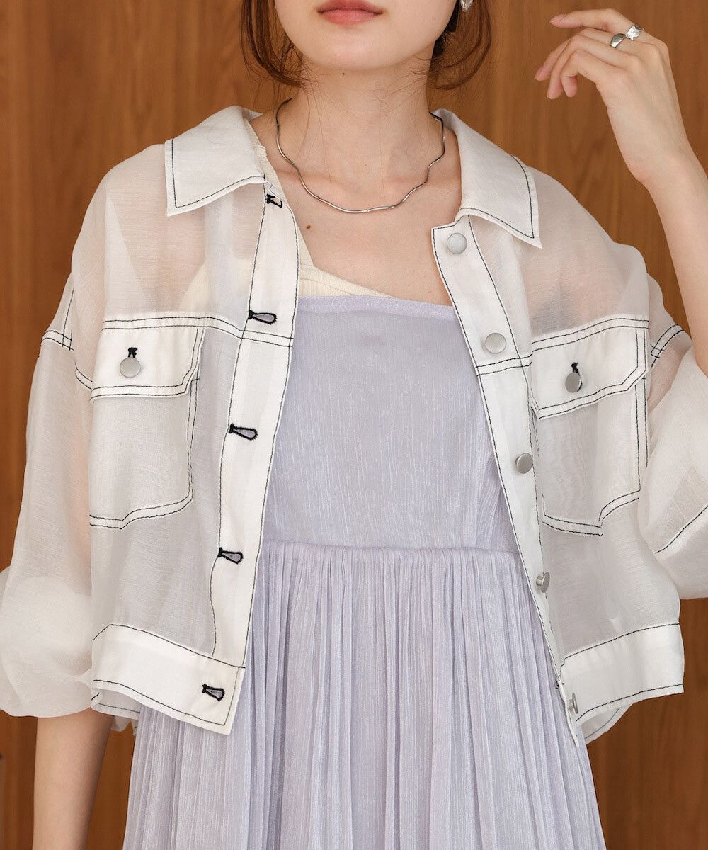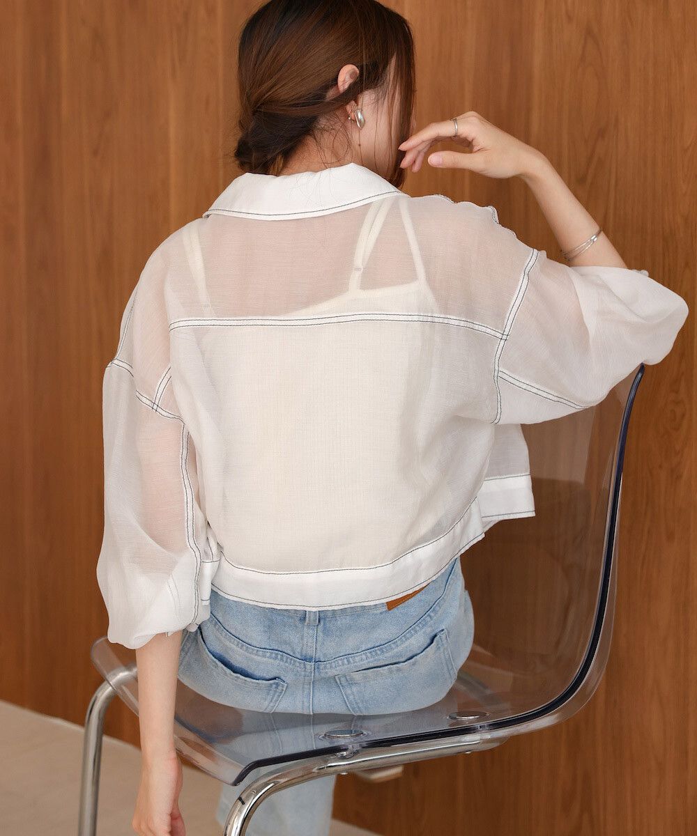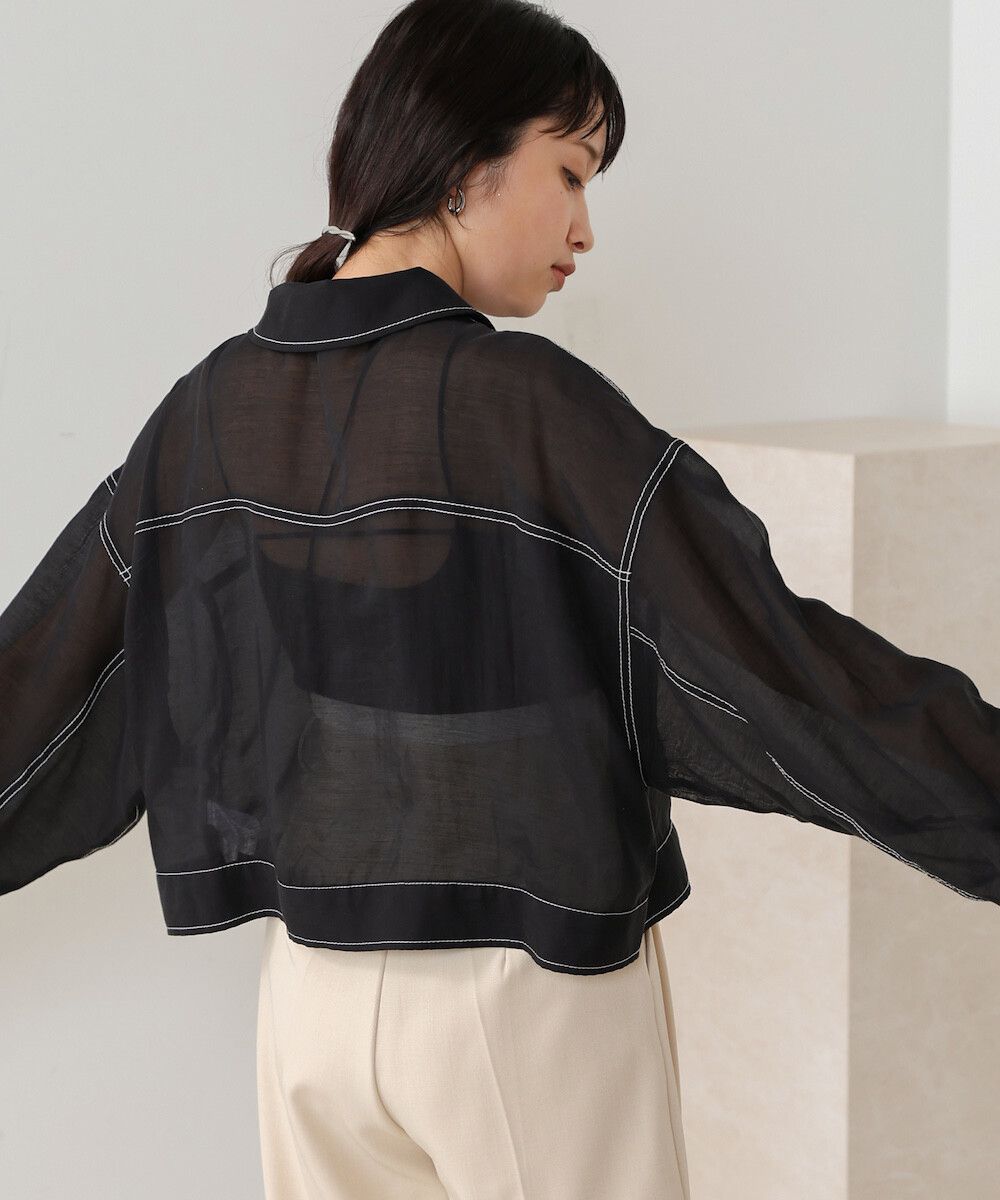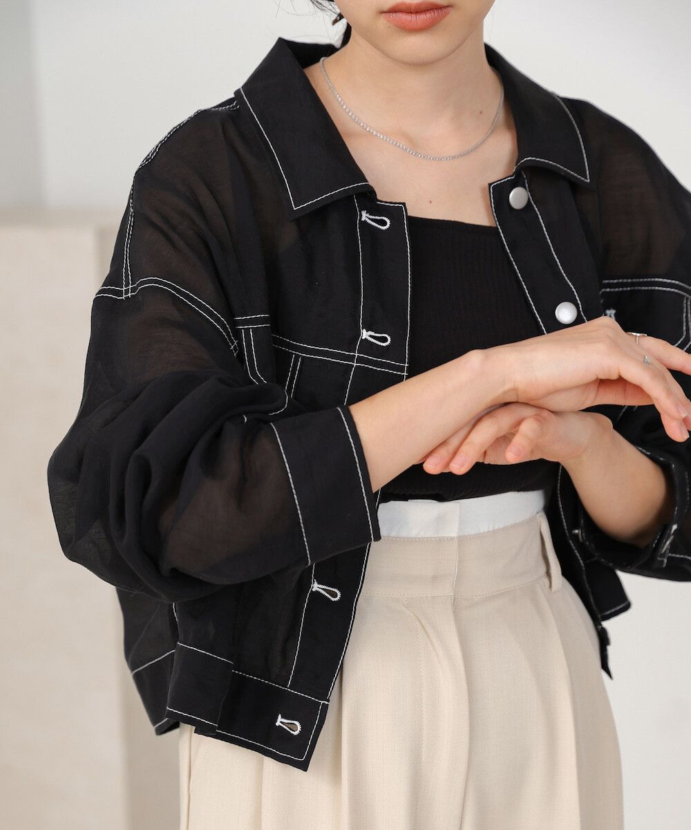 日本 Bab - 透膚質感俐落縫線短版夾克-米杏