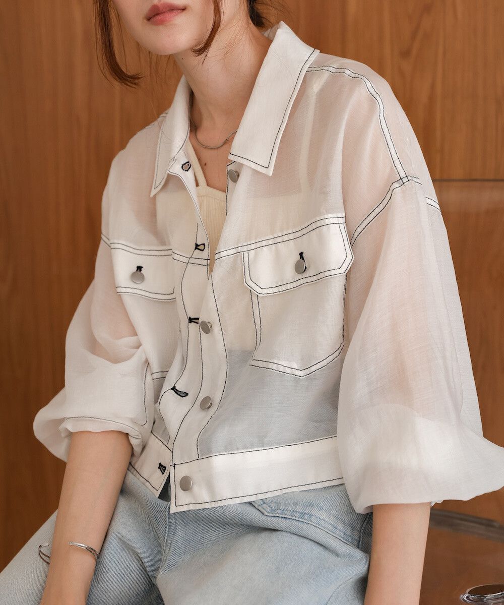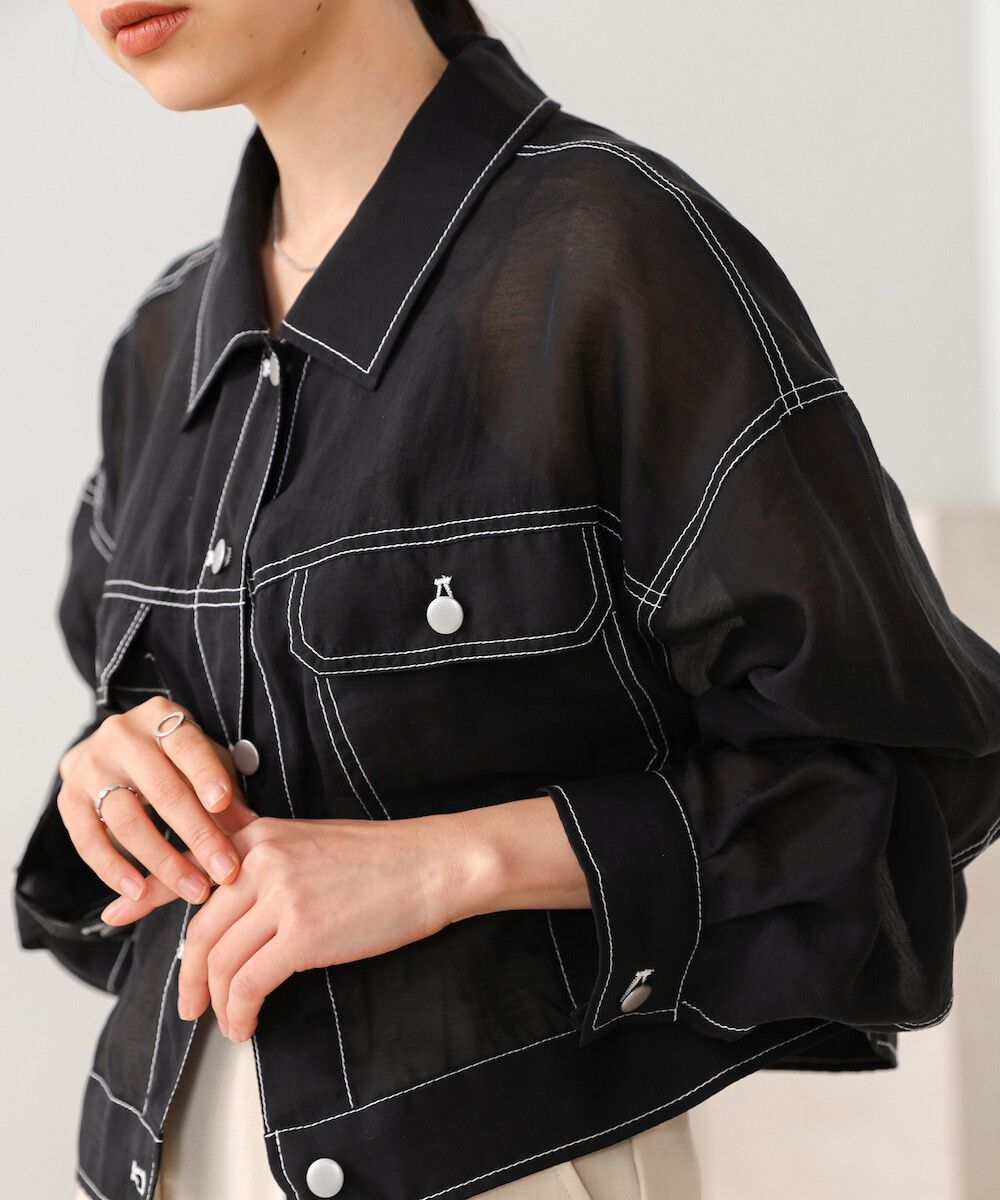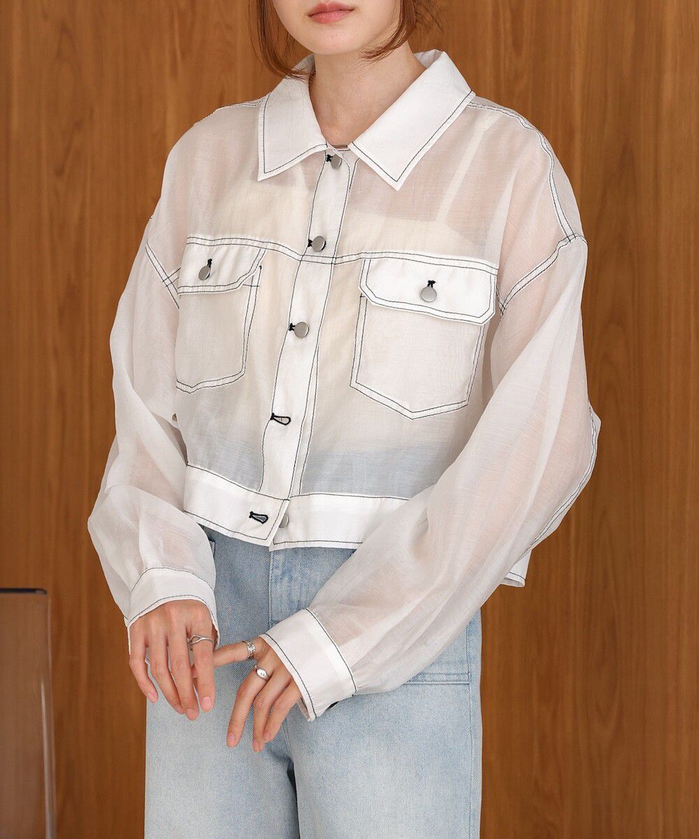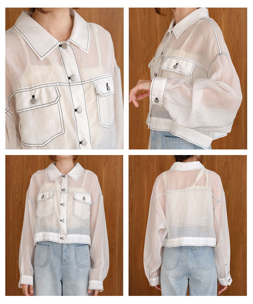 日本 Bab - 透膚質感俐落縫線短版夾克-米杏