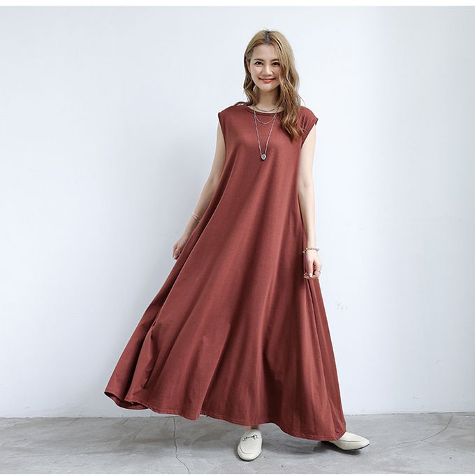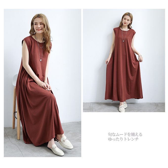 3D立體剪裁顯瘦無袖長洋裝-咖啡色
