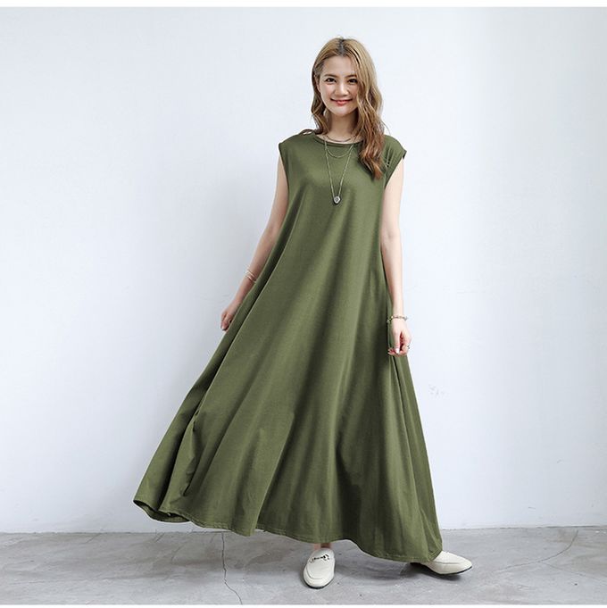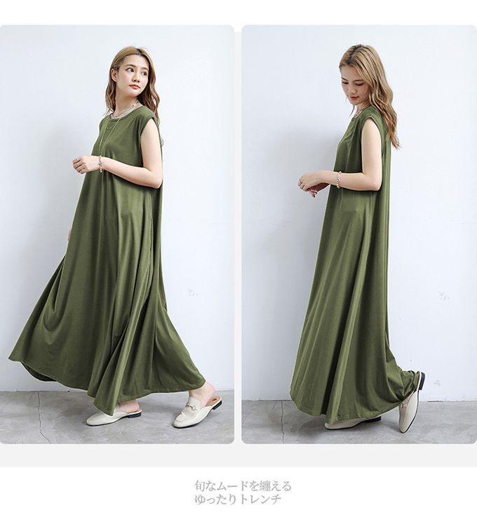Yukié - 3D立體剪裁顯瘦無袖長洋裝-軍綠色