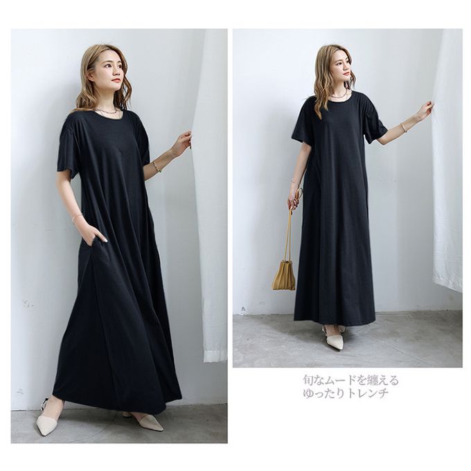 品名:3D立體剪裁顯瘦短袖長洋裝