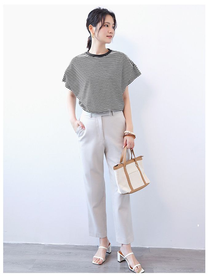 包色推薦!超顯瘦壓褶法式袖上衣-黑色條紋 (F)