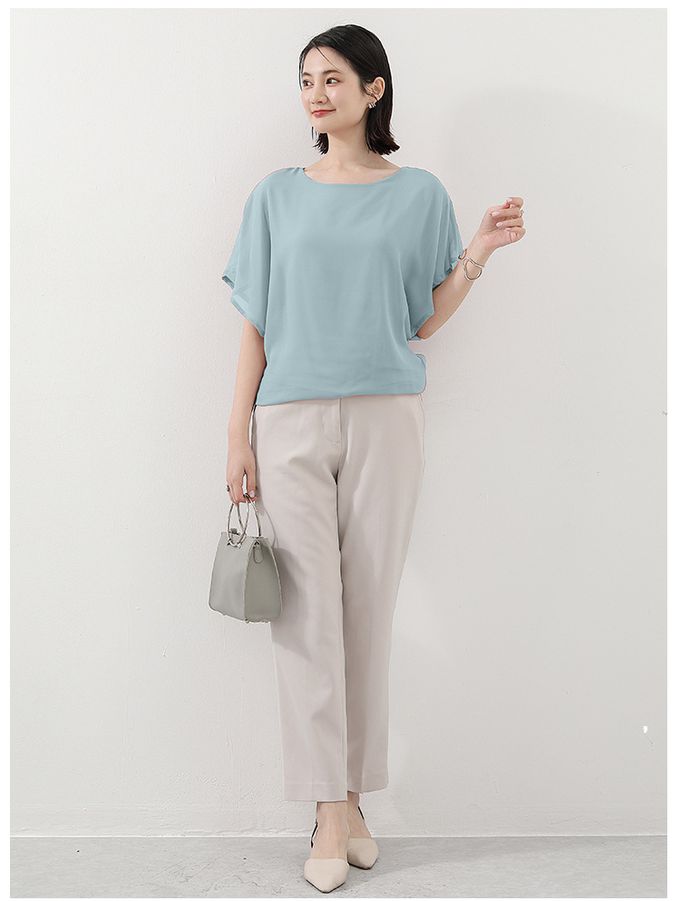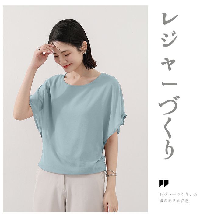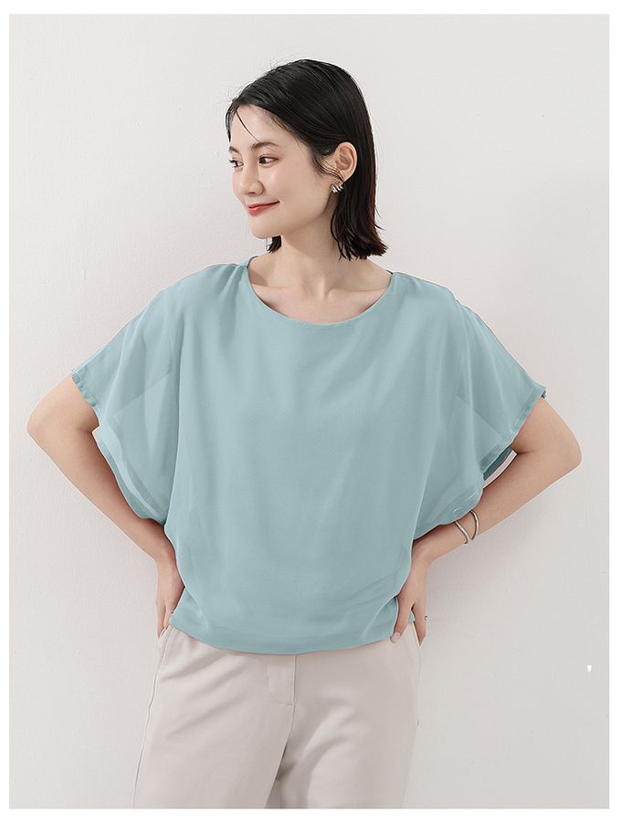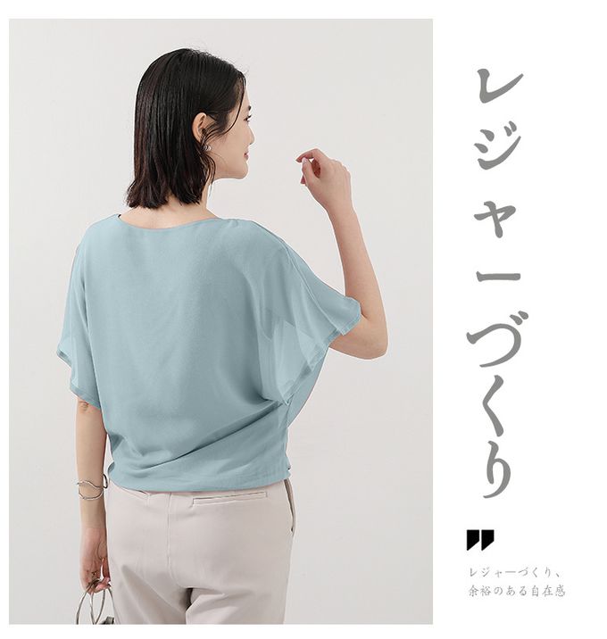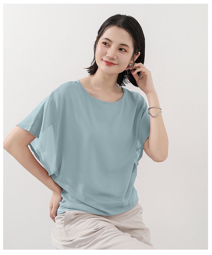氣質雪紡透膚荷葉袖上衣-霧霾藍