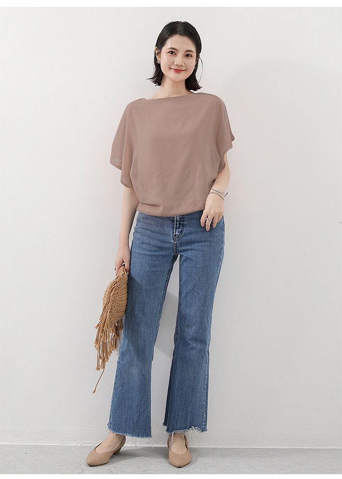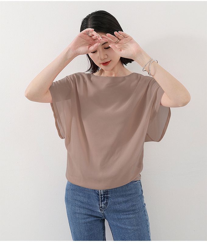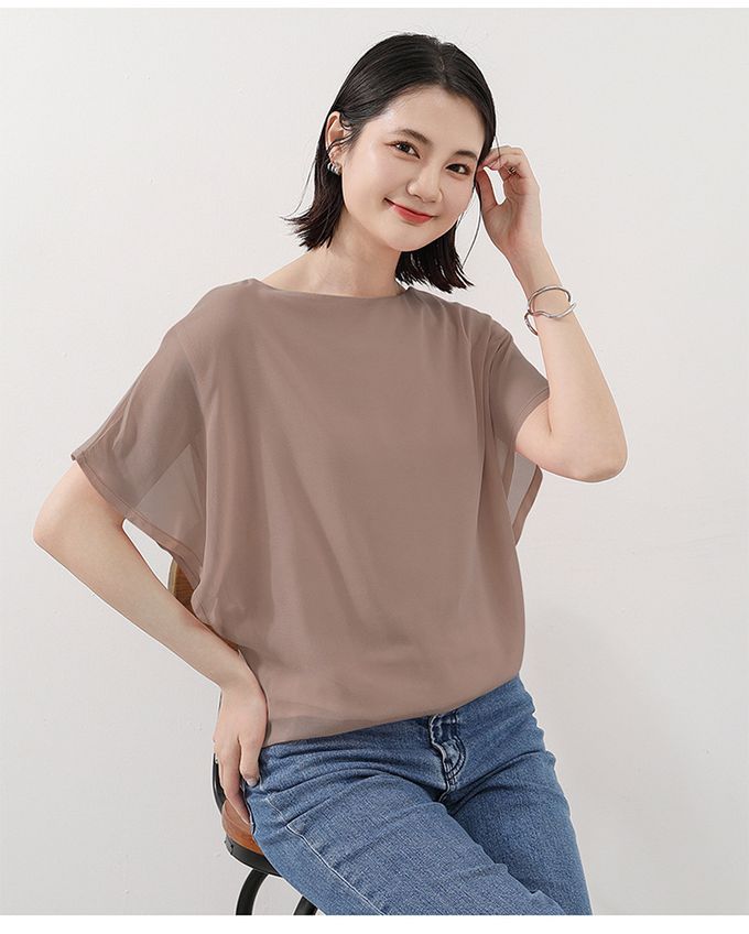 氣質雪紡透膚荷葉袖上衣-摩卡棕