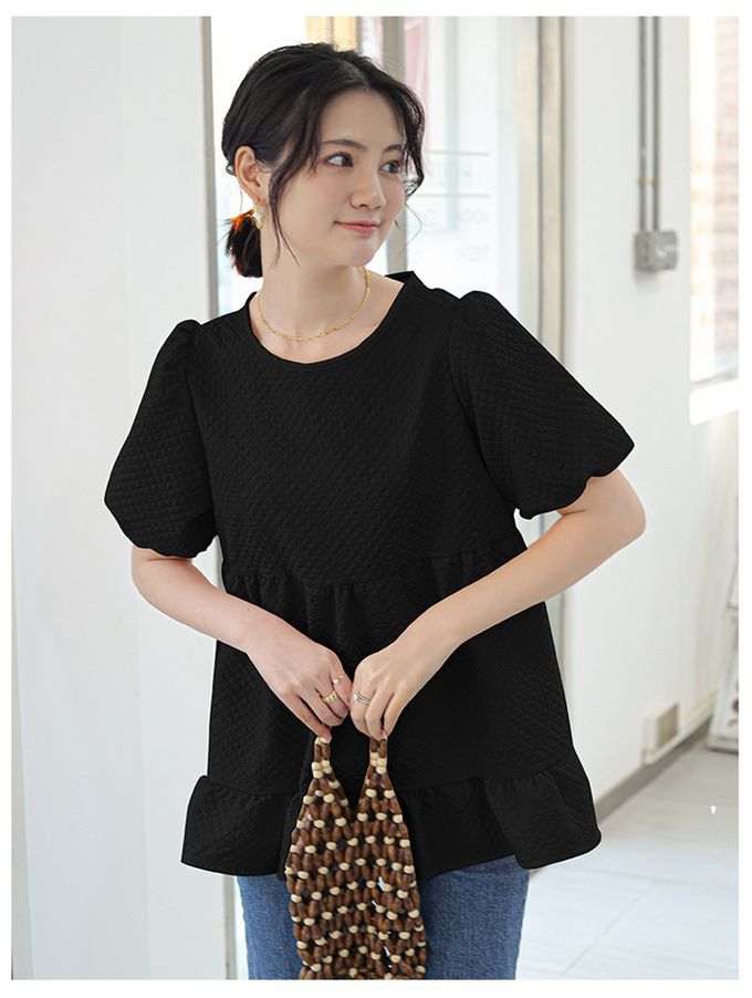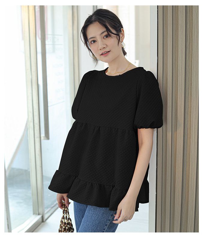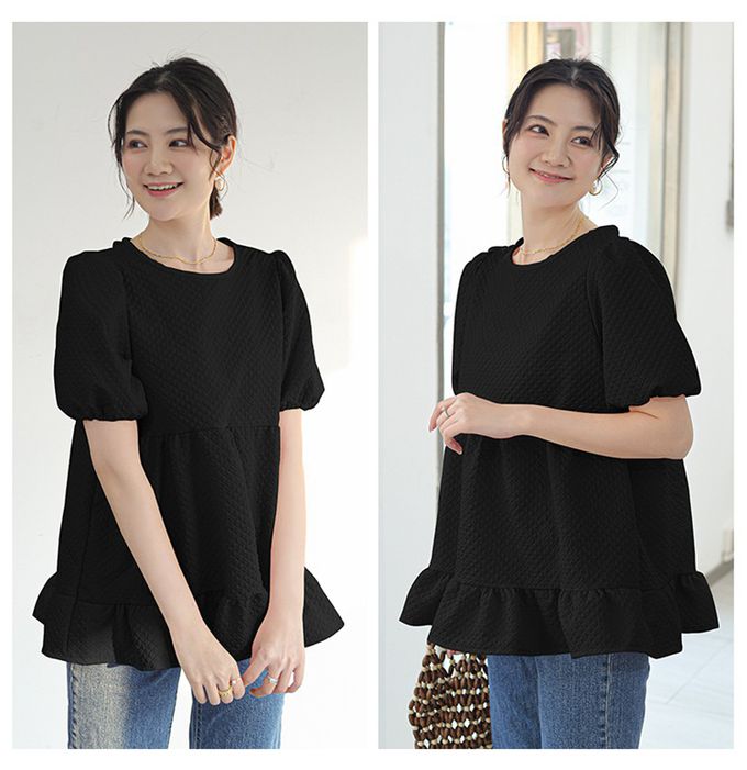 甜美減齡荷葉邊泡泡袖上衣-黑色