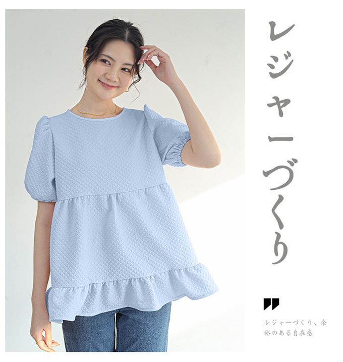 品名:甜美減齡荷葉邊泡泡袖上衣