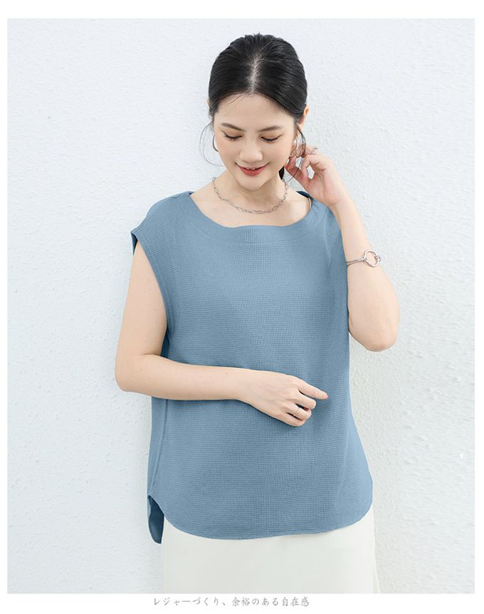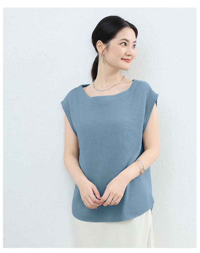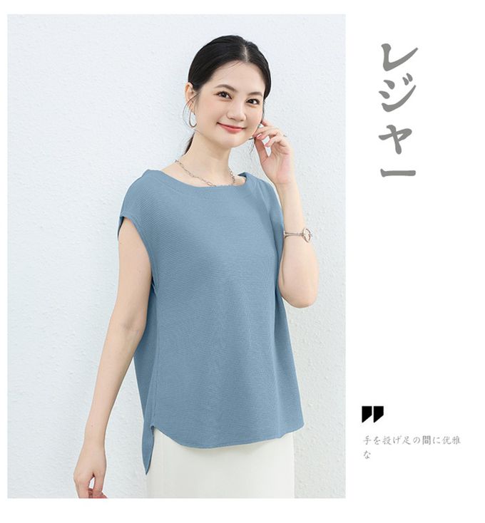 • 落肩短袖設計,舒適透氣、修飾手臂線條