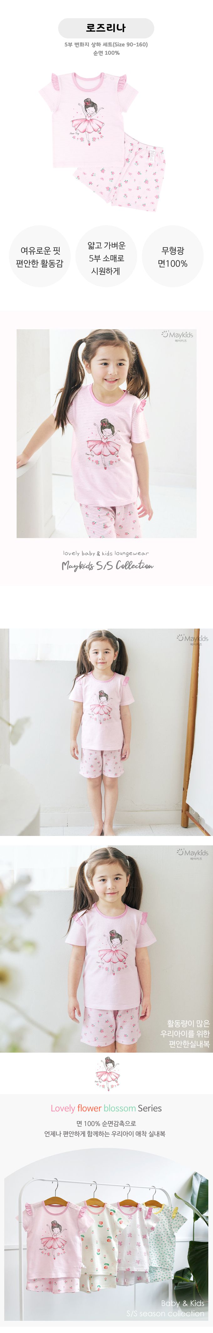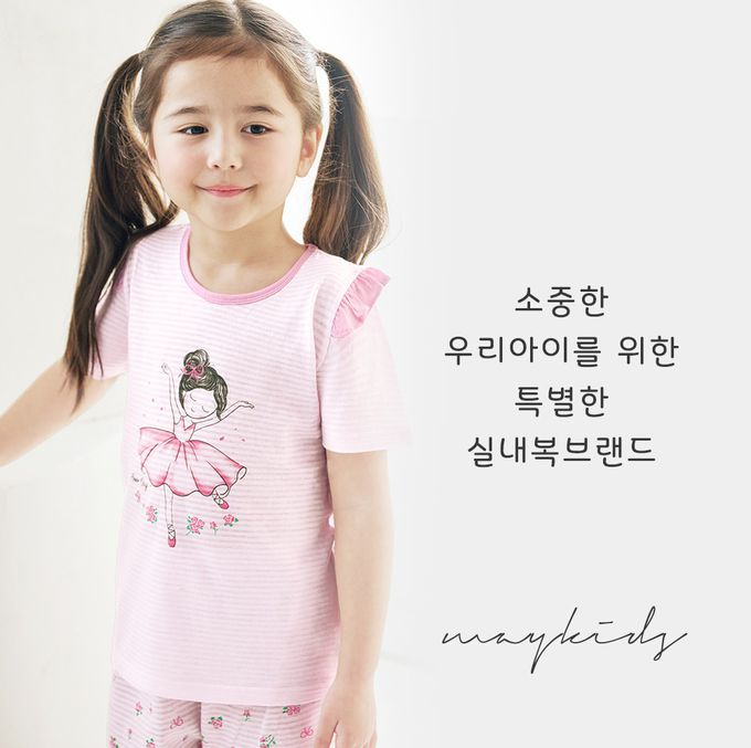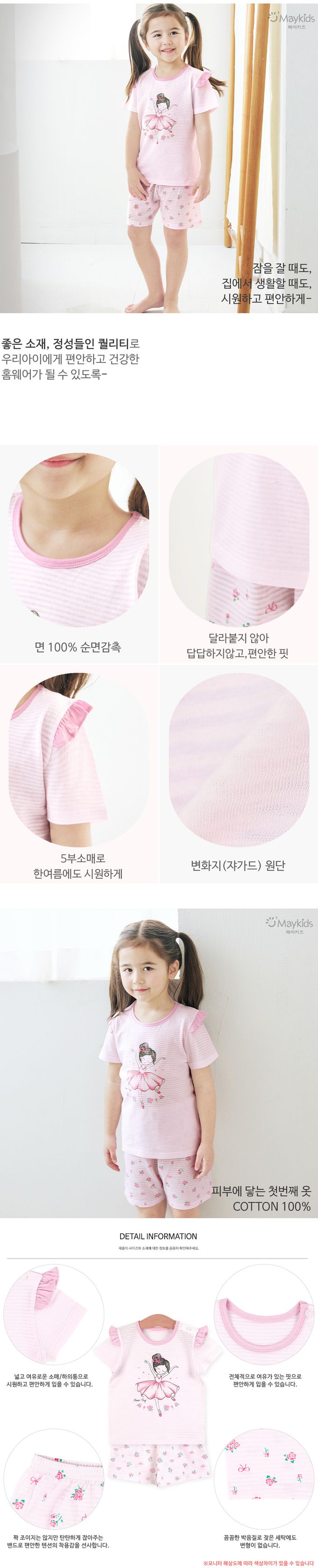 韓國 Maykids - 透氣條紋提花棉短袖家居服-芭蕾女孩-淡粉